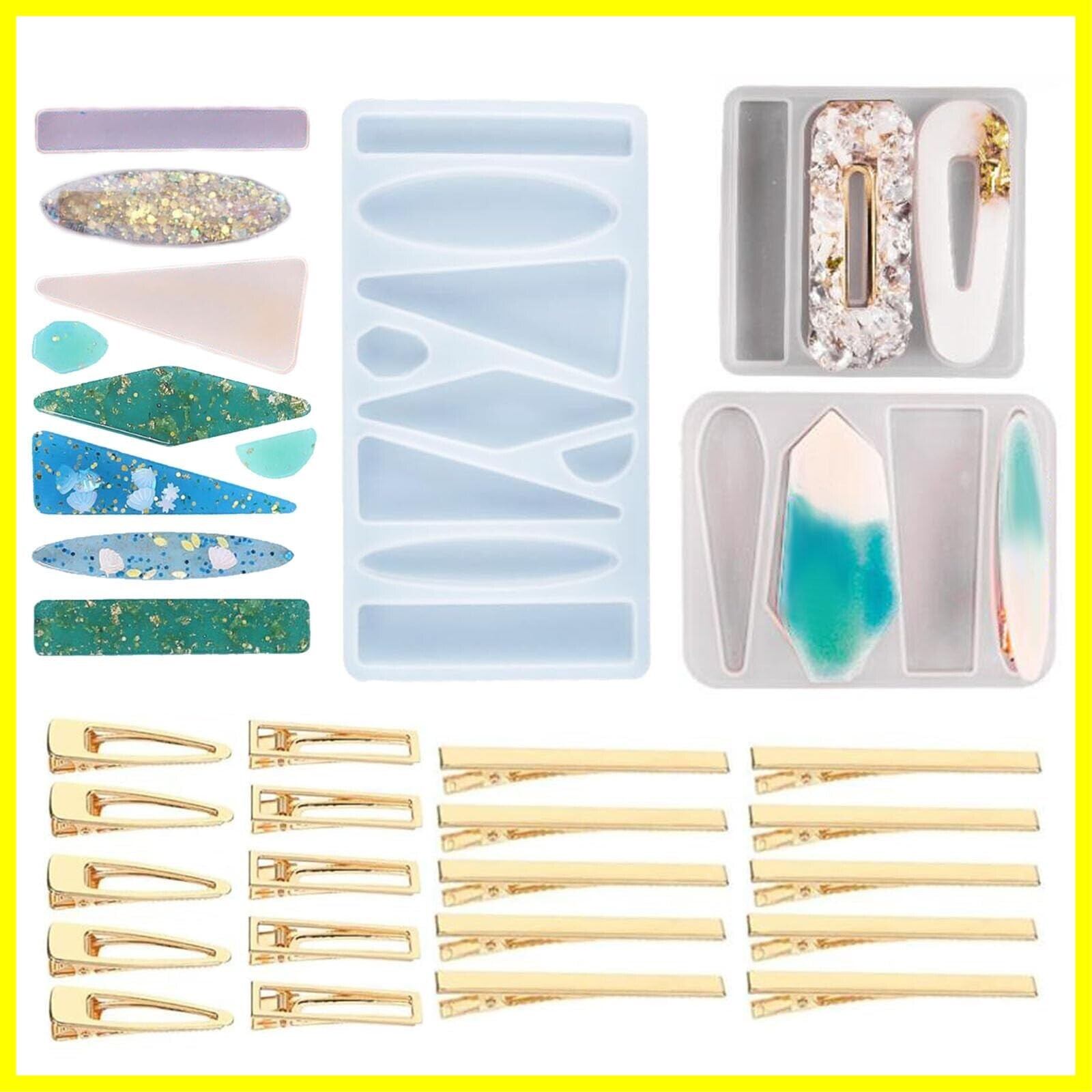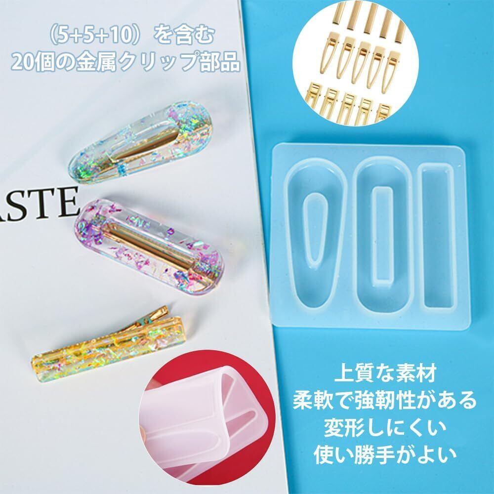 セット内容:ヘアクリップ シリコンモールド3個セット(20個金具クリップ付き)、サイズ:約7cm*7.4cm、8cm*14.5cm、7.8cm*10.9cm。