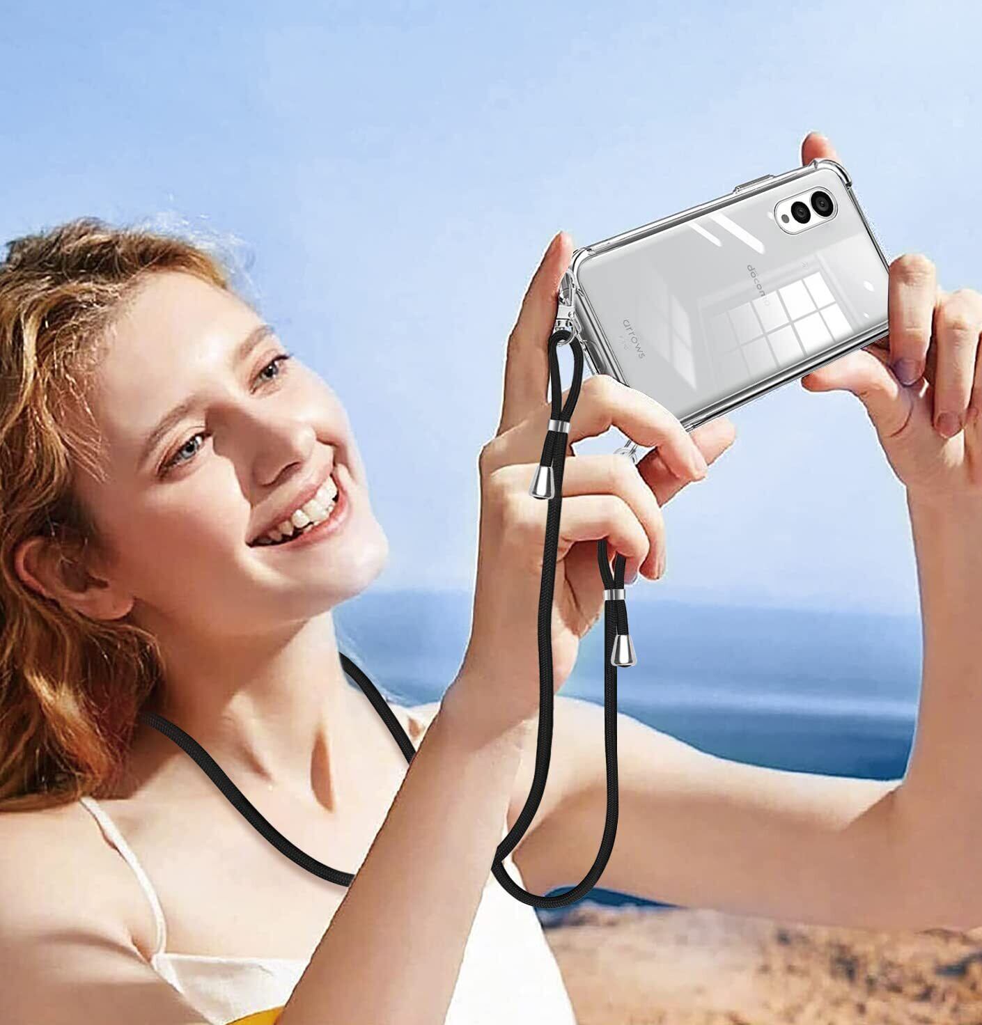 arrows N F-51C ケース ショルダー クリア 富士通 アローズ N F-51C スマホケース ストラップ付き 耐衝撃 arrows N カバー TPU 肩掛け 斜めかけ 縄掛けケース 縄掛け 薄型 軽量き 長さ調整可能 取り外し可能 落下防止 紛失防止 【透明】