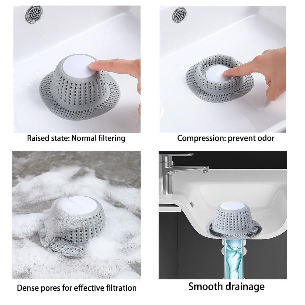 【多機能】髪及び他の粒子の目詰まりドレインを防ぐために、様々な場所で使用することができる汎用性の高い製品。ヘアストッパーは四個吸盤があるなので、吸着力は強いです。位置移動を効果的に防止する。