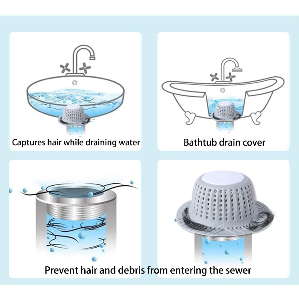 【取り付け簡単】ドーム型で折りたたみ可能なデザインのバスタブ排水口ヘア キャッチャーは、バスタブ、浴槽、シャワー、バスルームのフラット排水口とポップアップ排水口の両方に適合します。