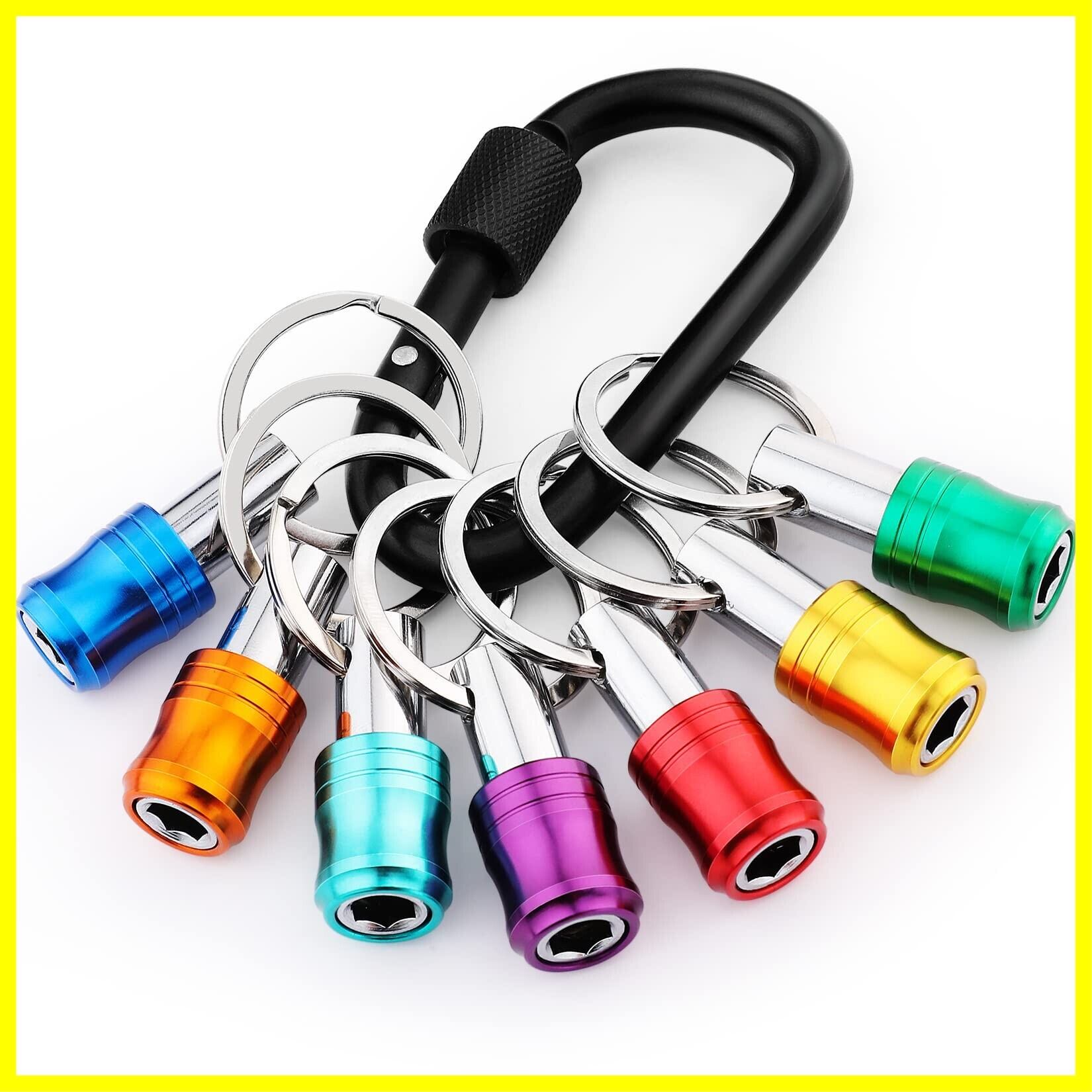 WORKPRO ビットホルダー ソケットホルダー ドライバービットセット 7色セット アルミ二ウム合金材質 色識別 キーホルダー固定 軽量 携帯用 収納