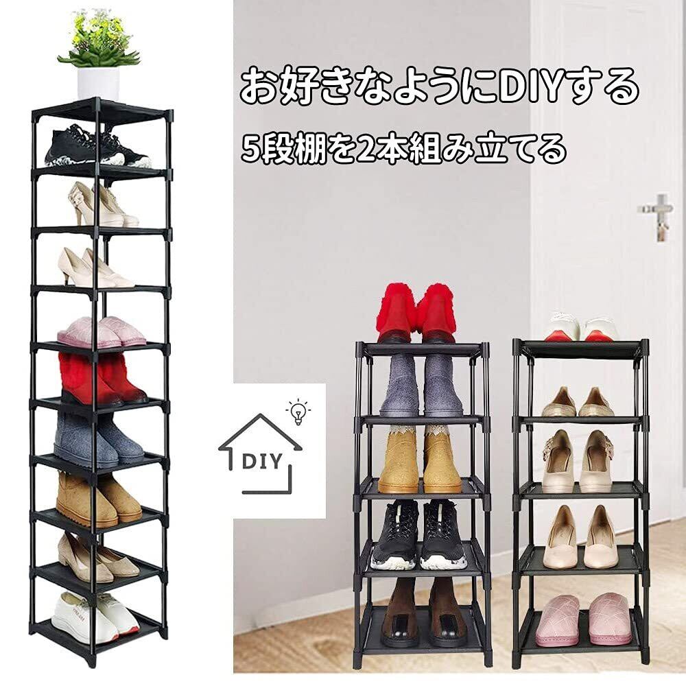 【棚数を自由に調節可能】Diy自由自在に組み立て、棚板を1枚取り付けなければ、靴を入れることができます。シューズラックの高さを自由に調整できるので、靴の数によって2個5層、10層までお好みによって自由に組み合わせることができます。お好みに応じて自由に組み立てられます。