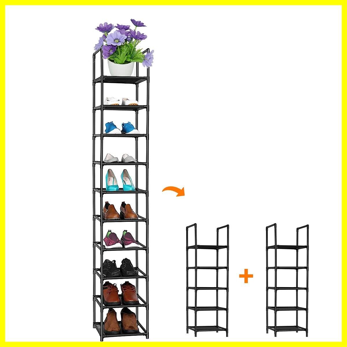 シューズラック 10段 靴収納 靴棚 10足 下駄箱 省スペース シューズボックス スリム 玄関に靴を効率収納 靴入れ 組み立て式 幅約30×奥行30×高さ176cm(ブラック)