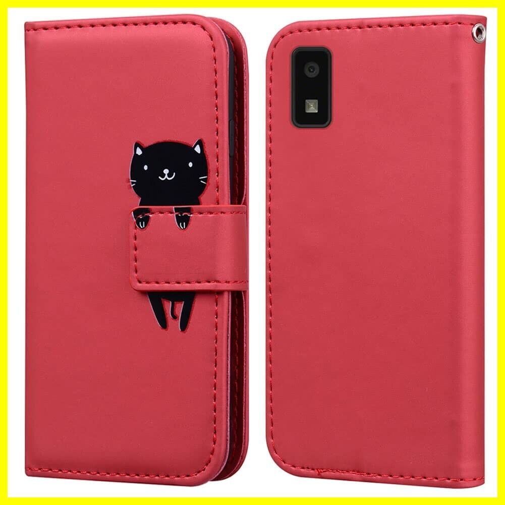 ALSDKEZI 対応 AQUOS wish/wish 2 ケース 手帳型, AQUOS Wish SHG06 A104SH SH-M20/AQUOS Wish 2 SH-51C A204SH カバー 暗赤色, 女性 人気 PUレザー 財布型 可愛いカバー 黒猫 かわいい 動物 耐衝撃保護ケース スタンド機能 カード収納 スマホケース(ダークレッド/Dark Red)
