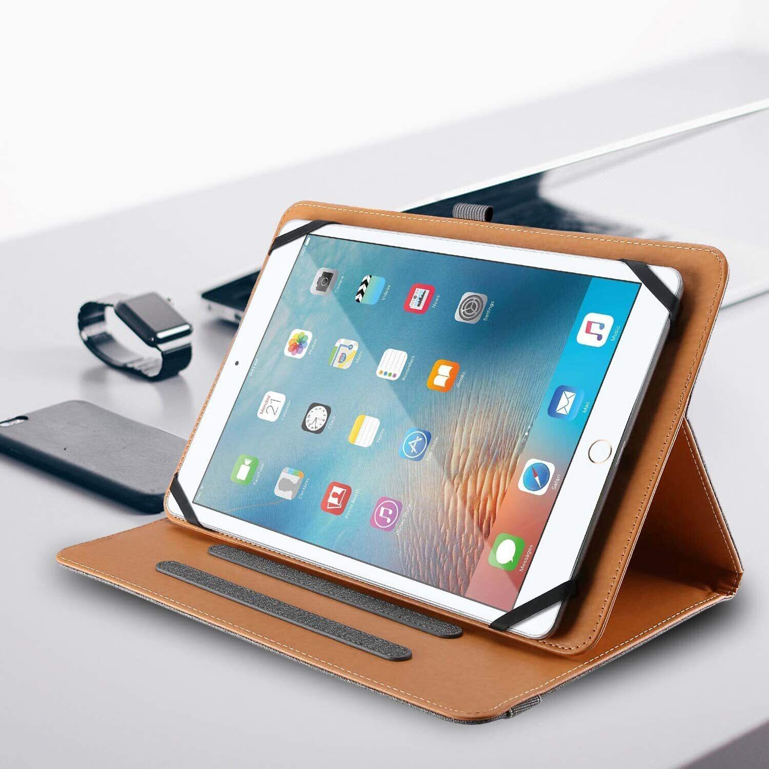 ProCase タブレットケース 10インチ 汎用「9-10.1インチ」対応可能 マイナーなブランドのタブレットに最適 PUレザー製 ペン収納可 ゴムバンド固定 3つのスタンド角度調節可能 ポケット付き ご注意:購入前、サイズと開口部の確認が必要!!!