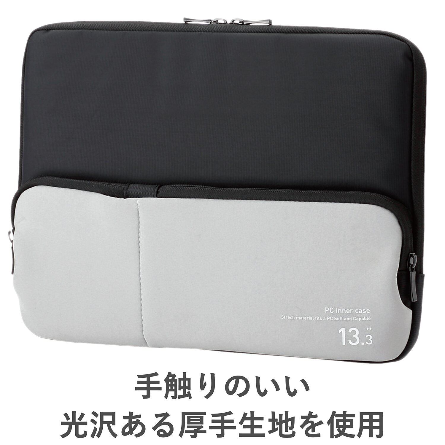 汚れにくい高級感のある生地を使用し、パソコンをキズや汚れから守るインナーバッグです。