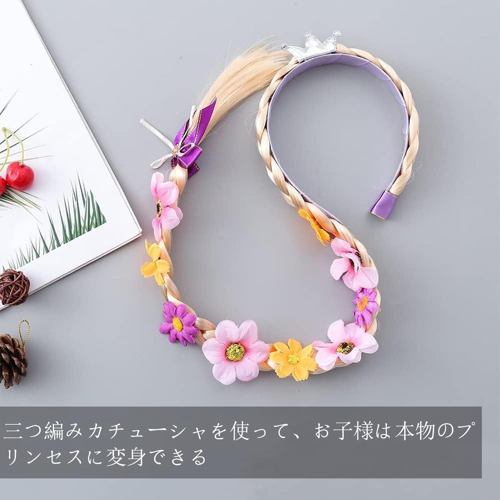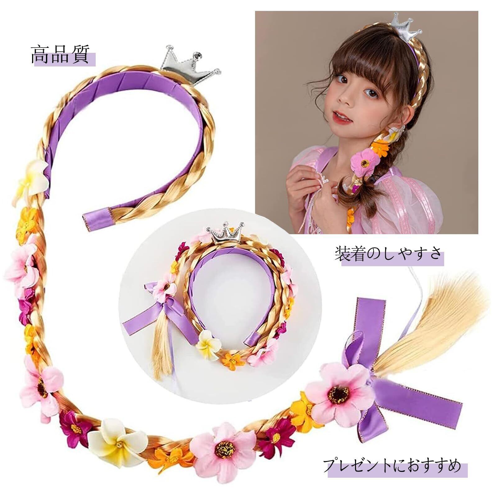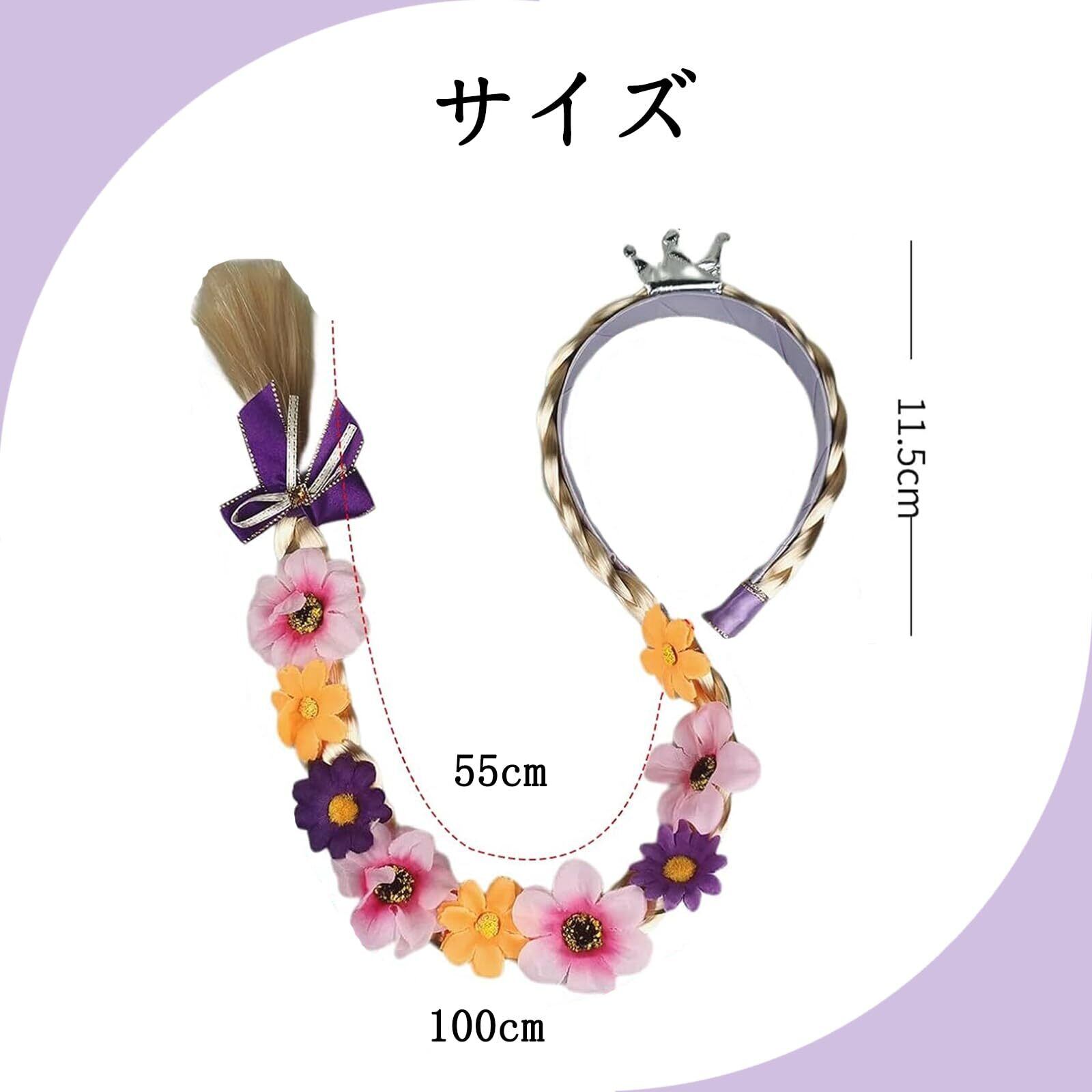 【サイズ】組紐の長さは約100cm、カチューシャの直径は約2.5cmです。あなたの子供がきらめくラプンツェルになるようにします。