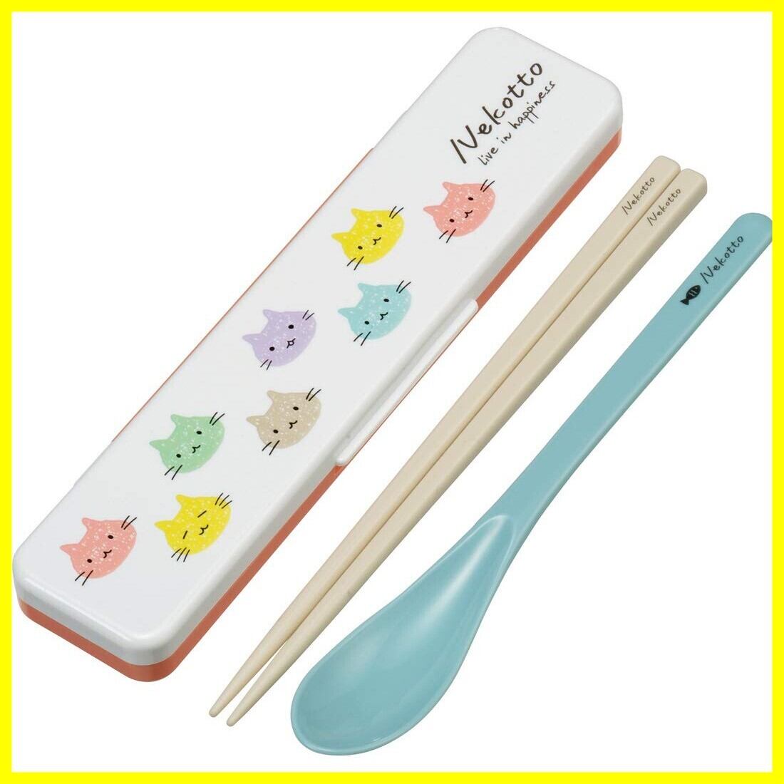 スケーター(Skater) 箸 スプーン コンビセット 18cm 抗菌加工 お弁当 大人用 シリコンクッション付きで音がならない 日本製 ねこっと カラフル CCS3SAAG