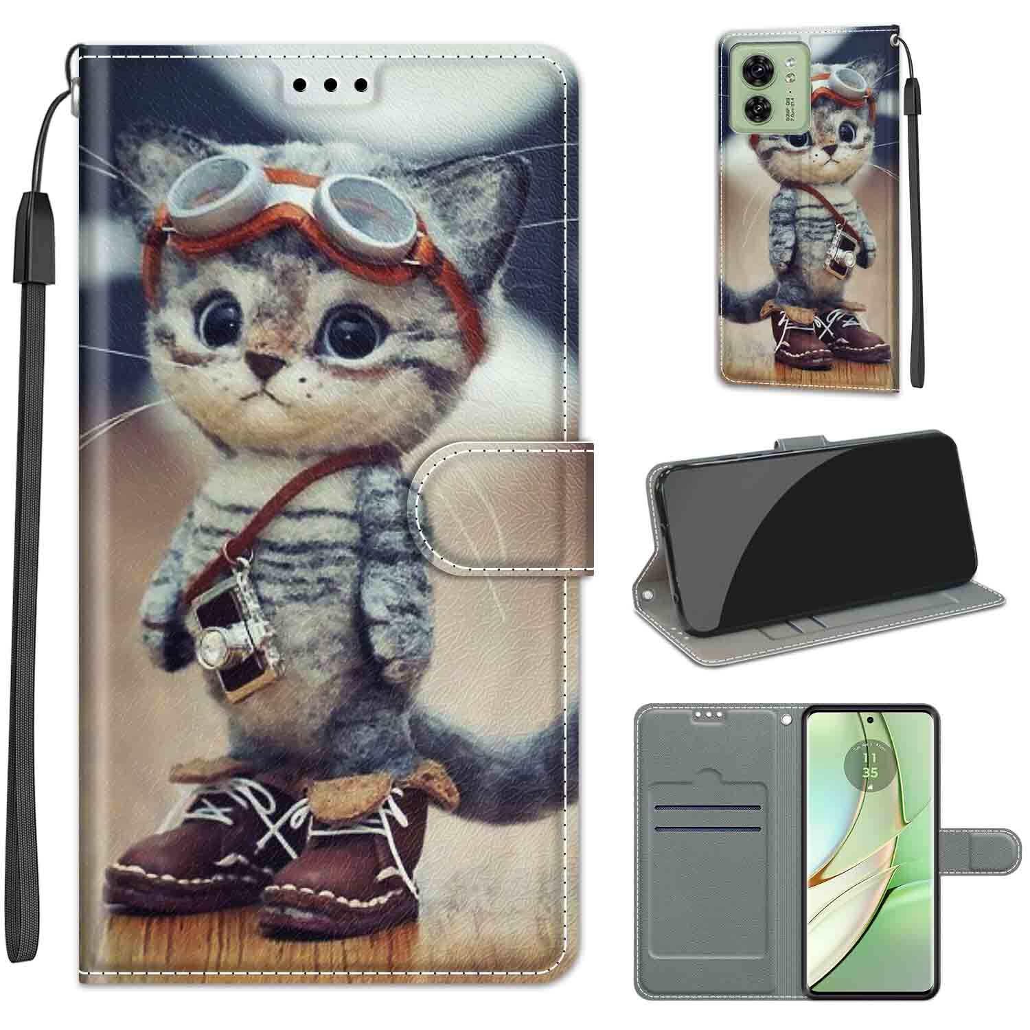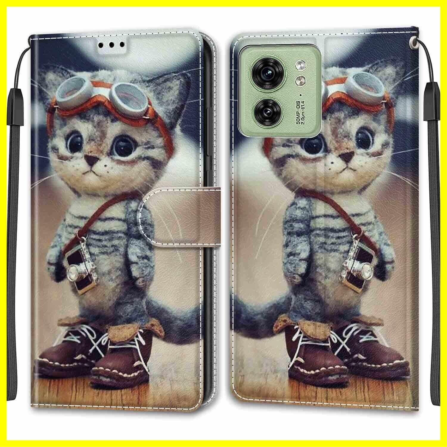 KENHONER Motorola Moto Edge 40 5G ケース 手帳型 防塵 耐衝撃 傷つけ防止 軽量 手作り PUレザー カード収納磁気 マグネット スタンド機能 Motorola Moto Edge 40 5G 用 対応 ケース (スーツ猫)