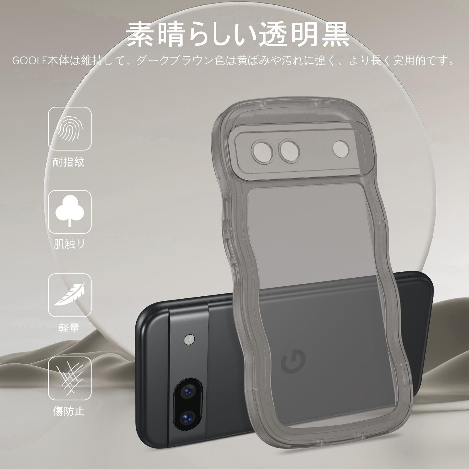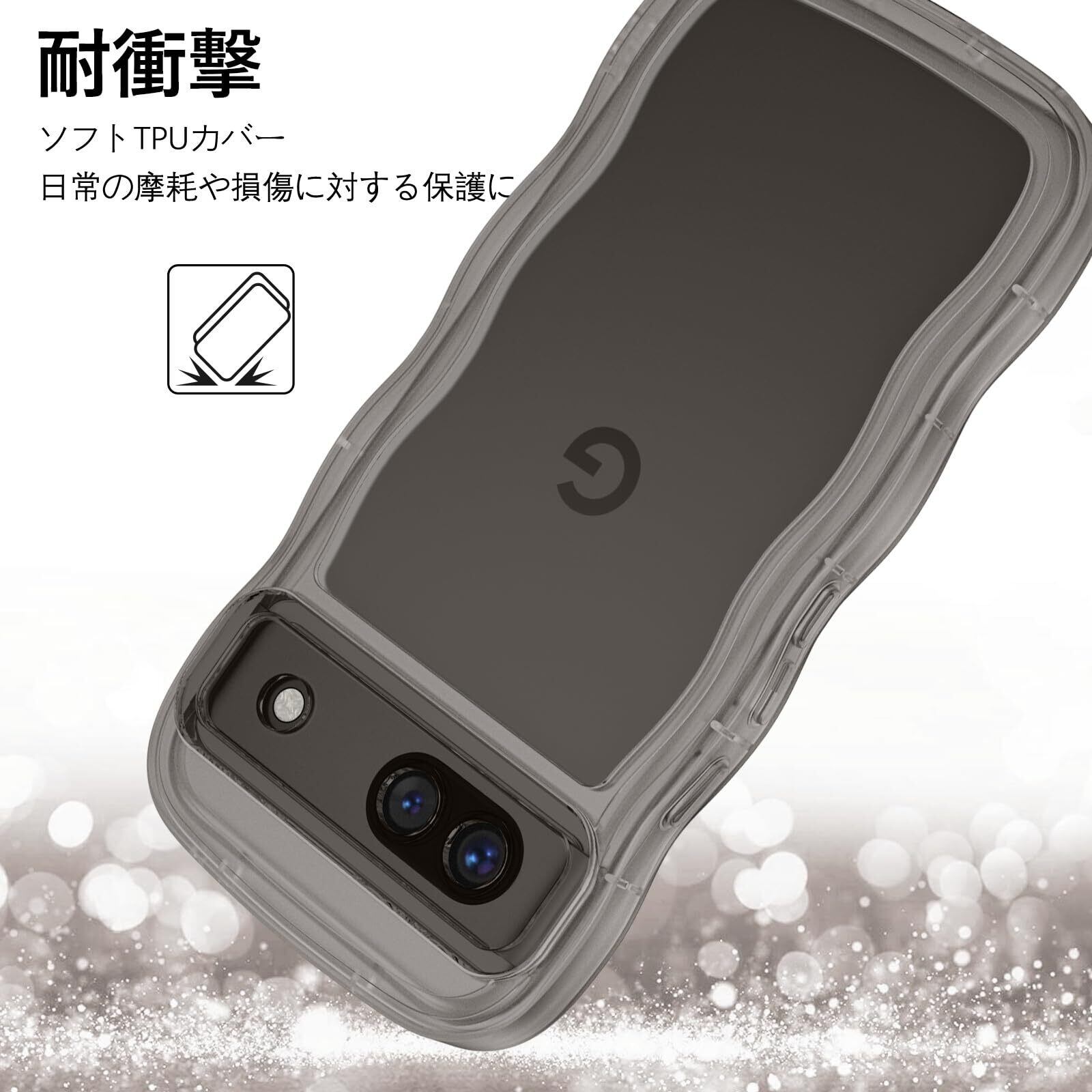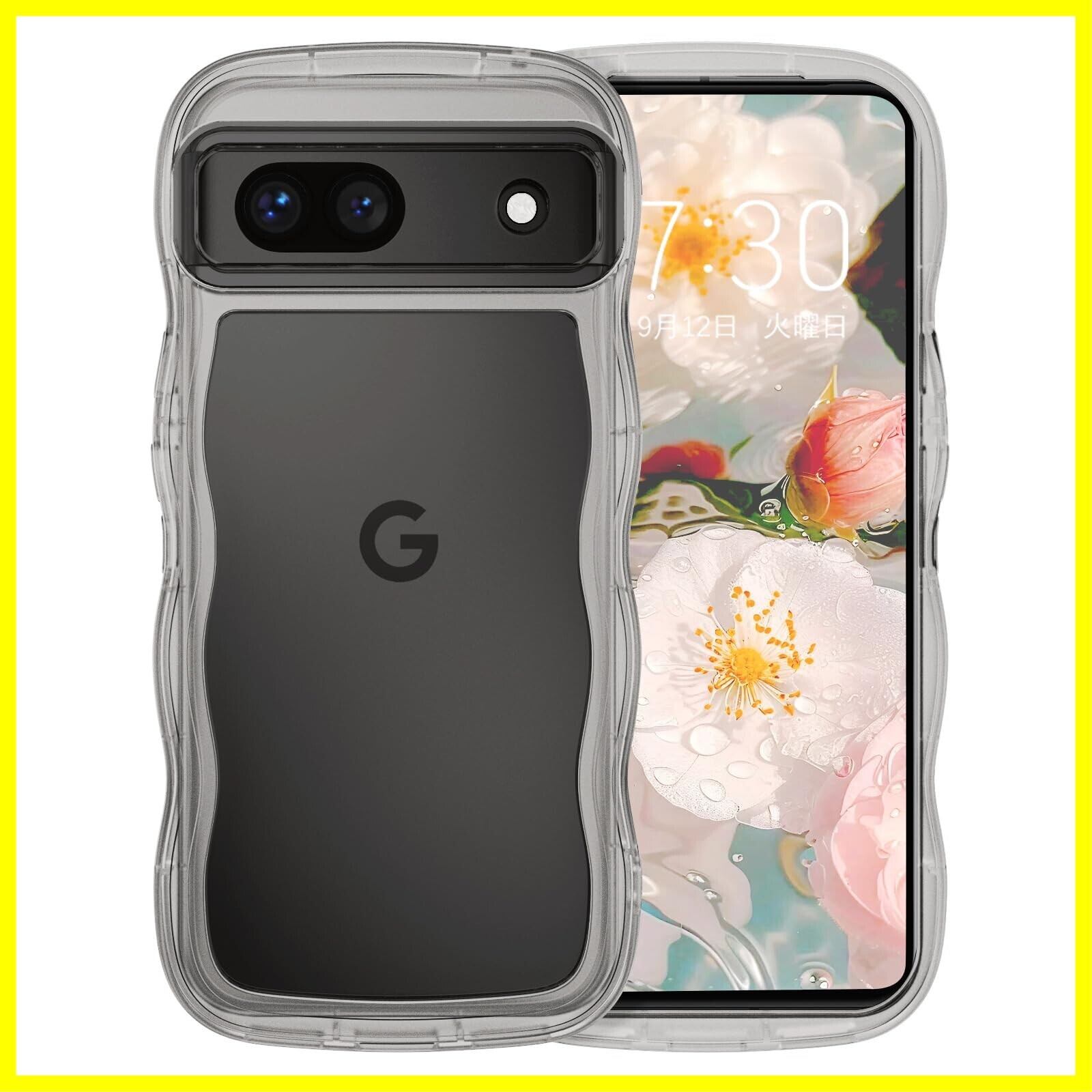 GUAGUA Google Pixel 8A ケース クリア ウェーブ ピクセル 8a ソフト TPU うねうね 透明黒 ケース マツと感 人気 韓国 耐衝撃 超軽量 薄型 おしゃれ 黄ばみなし アクスタが入る スマホケース pixel8a ワイヤレス充電対応 ストラップホール付き グーグルピクセル8a なみなみ カバー(ブラック 透明黒)