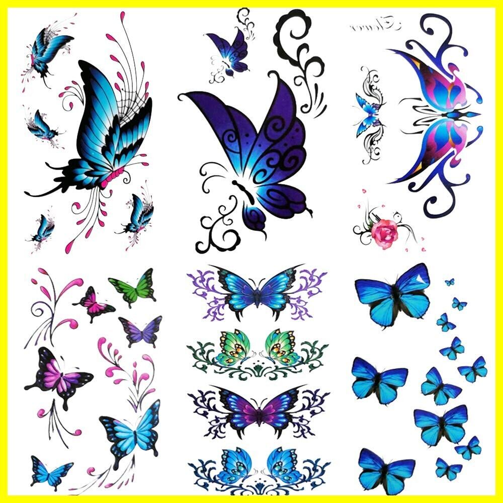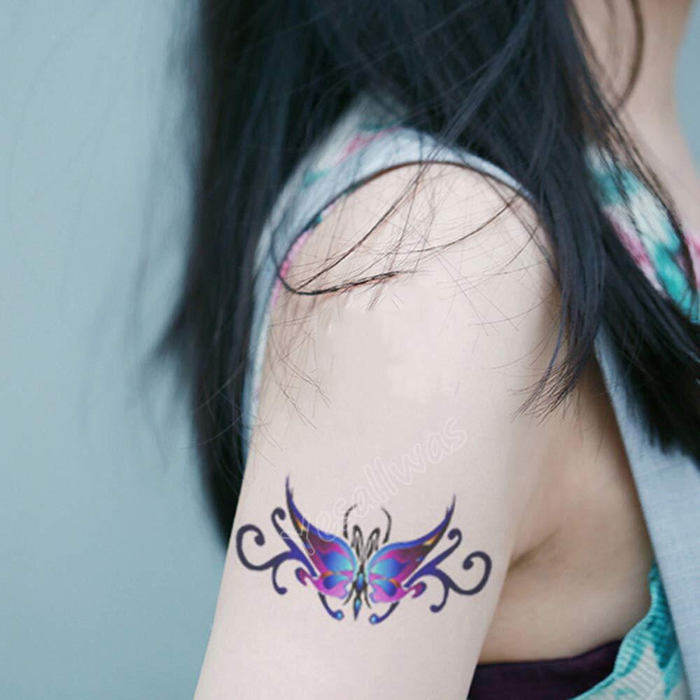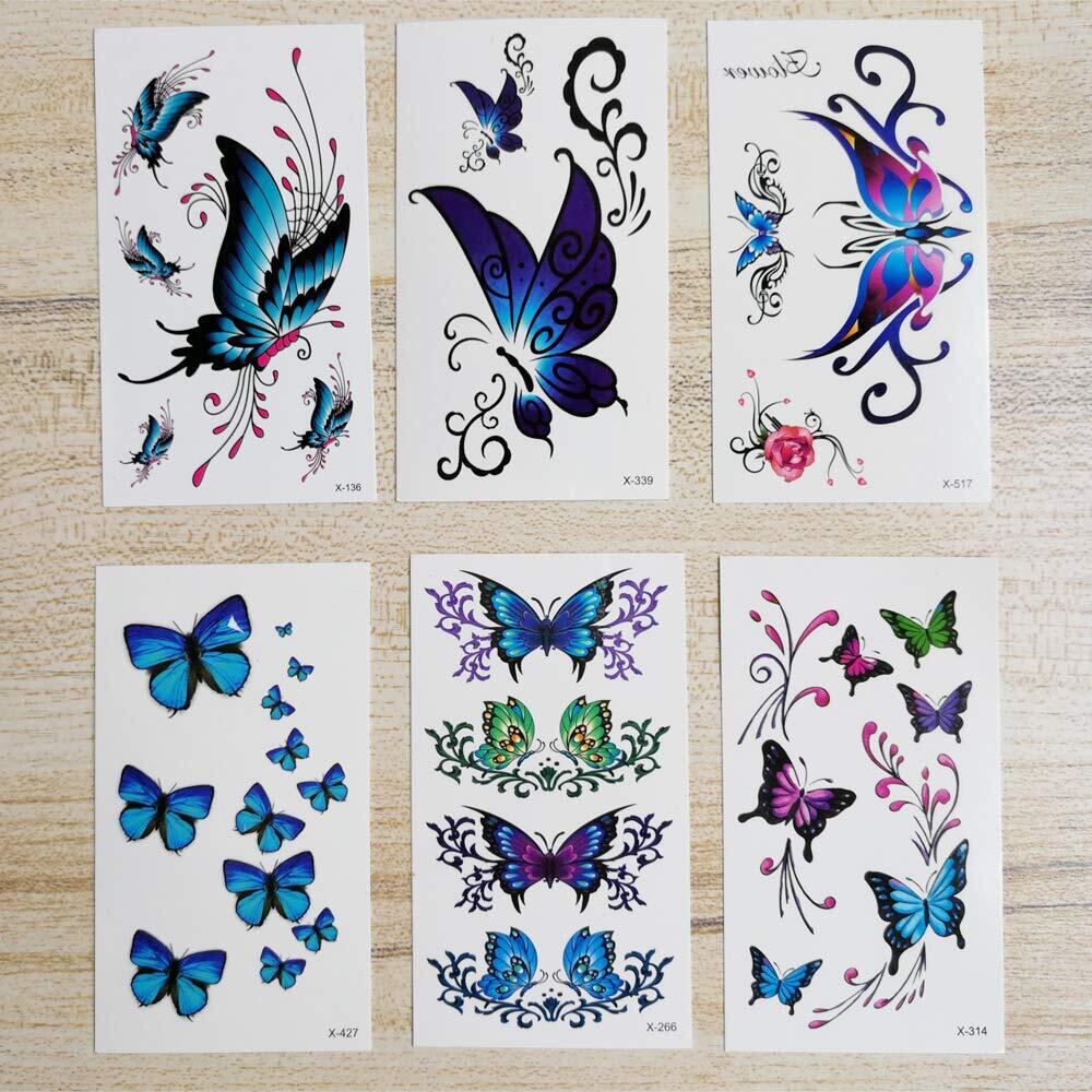Yesallwas タトゥーシール 蝶 青 長持ち 6枚セット 入れ墨シール 蝶々 タトゥー ブルー 刺青シール バタフライ タトゥーステッカー ボディーシール 防水 (蝶))