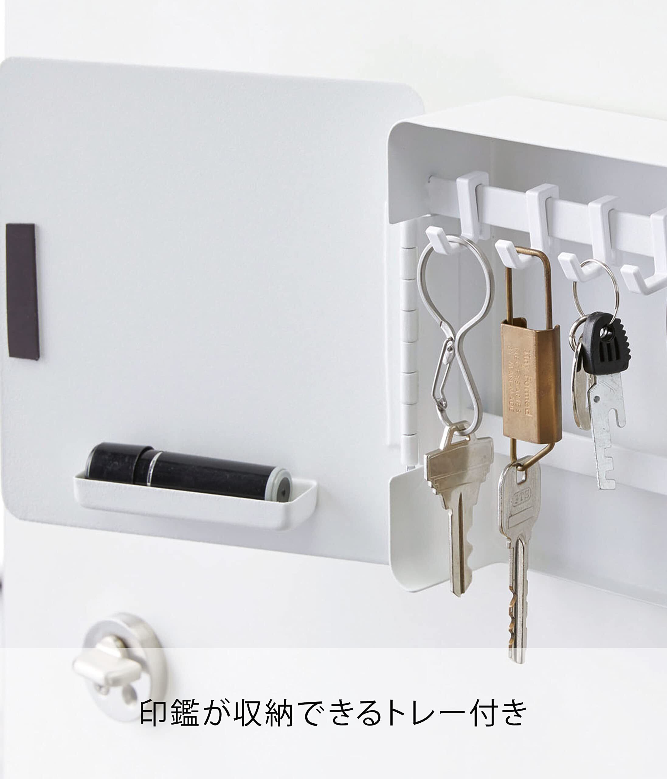山崎実業(Yamazaki) マグネット キーフック 2段 ホワイト 約W15.8XD5.5XH15.8cm タワー 玄関 エントランス 鍵 印鑑 収納 鍵いれ 4799