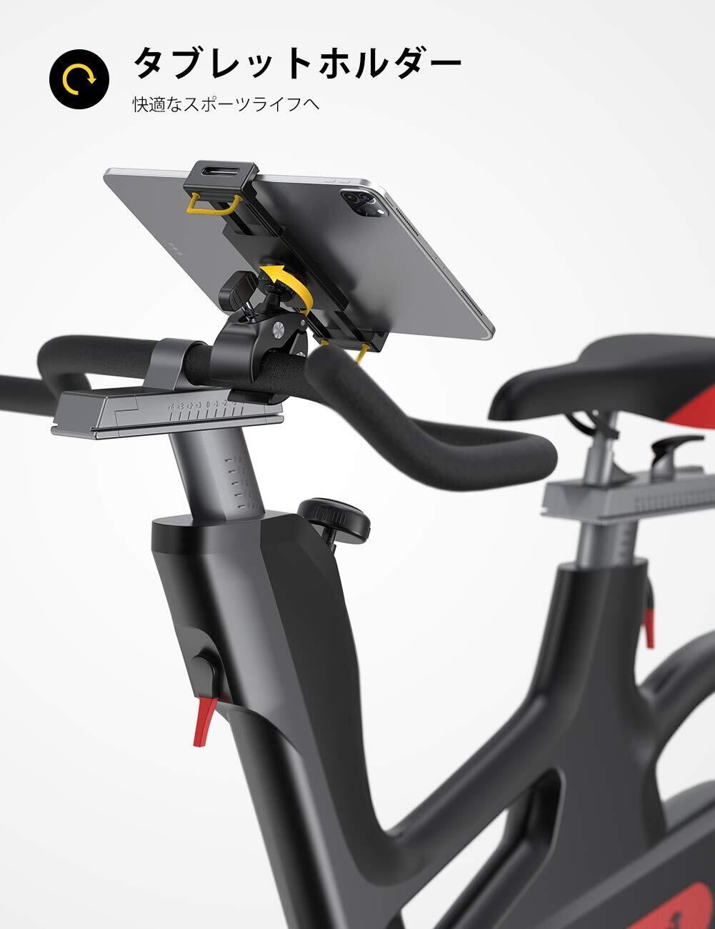 フィットネスバイク取付 タブレット ホルダー ハンドルバー ポール 取付 室内バイク ランニングマシン ルームランナー エクササイズ スピン クロスバイク ベビーカー トレッドミル バイク エアロバイク ロードバイク サイクリングマシン トレーニング tablet holder 4.7-12.9インチ タブレット対応 ipad 第十世代 ipad pro mini Air android