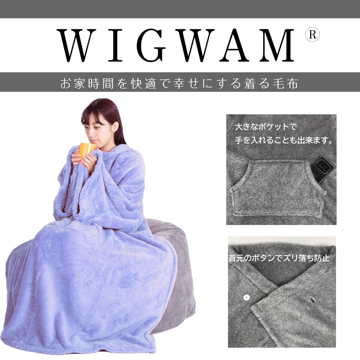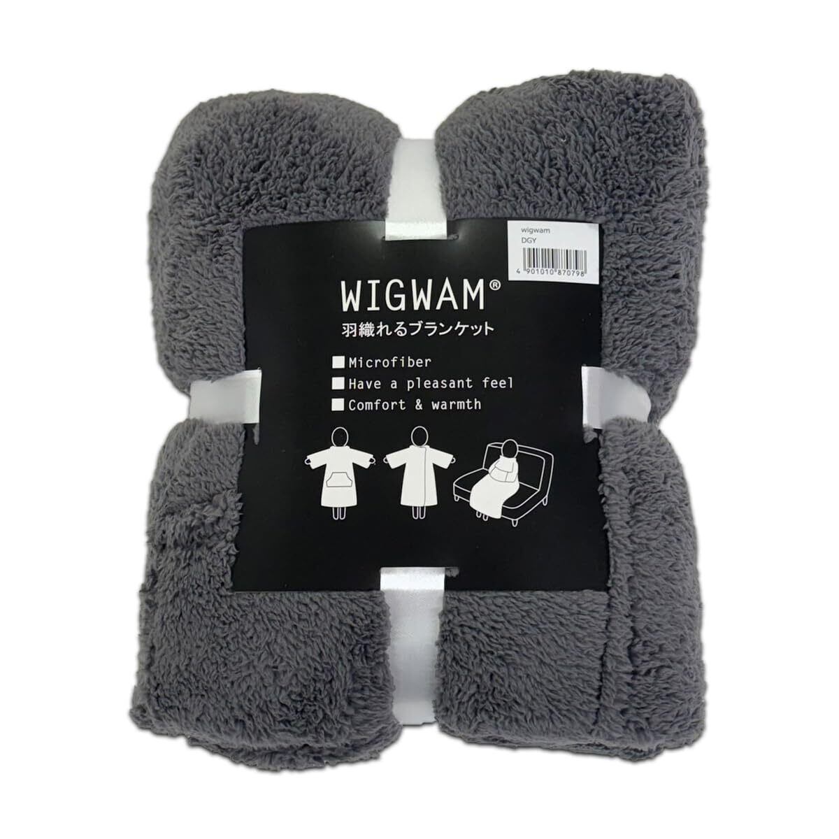 WIGWAM(ウィグワム)羽織れるブランケット 着る毛布 ダークグレー (幅136×身丈150cm) ルームウェア 防寒 男女兼用 前ポケット付き ボタンタイプ