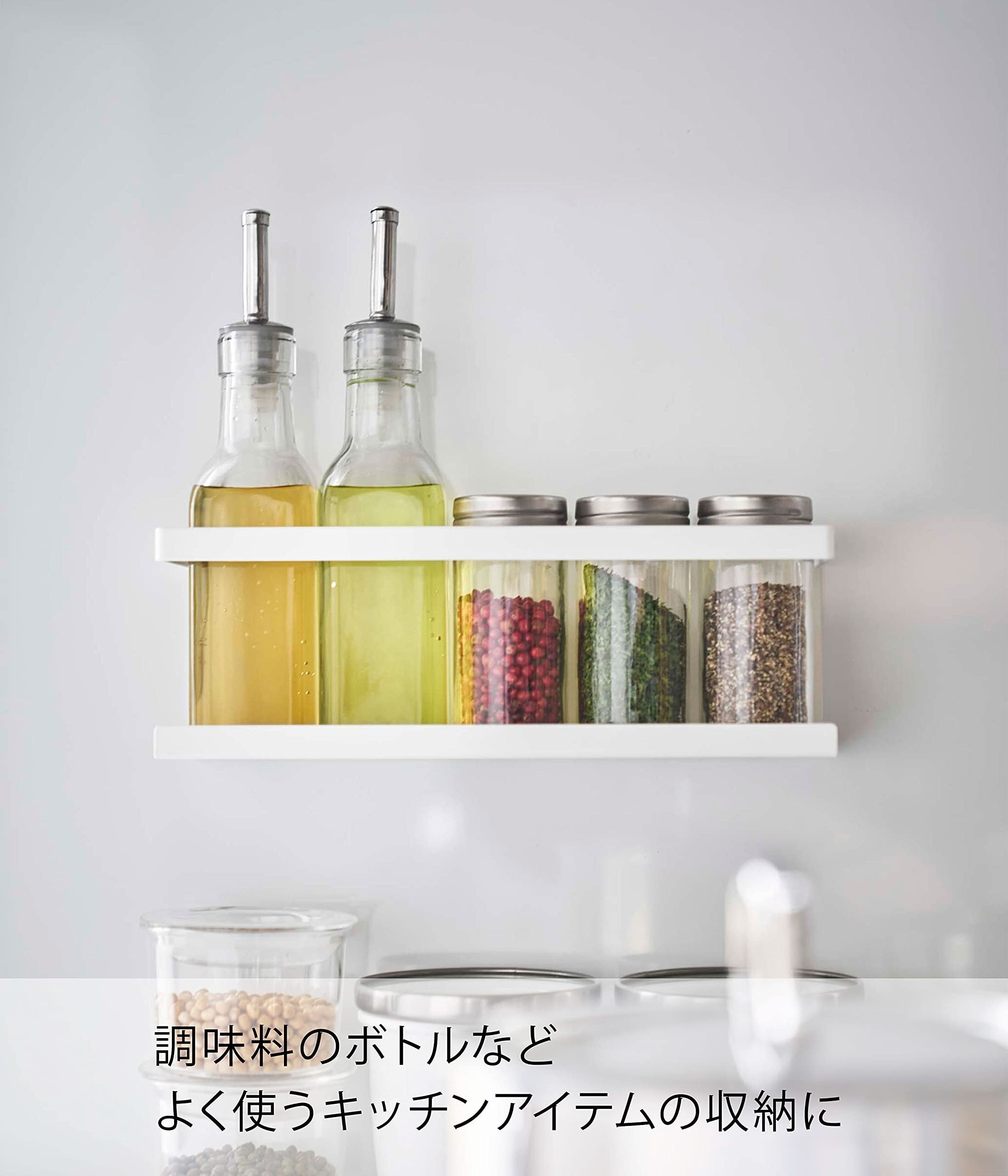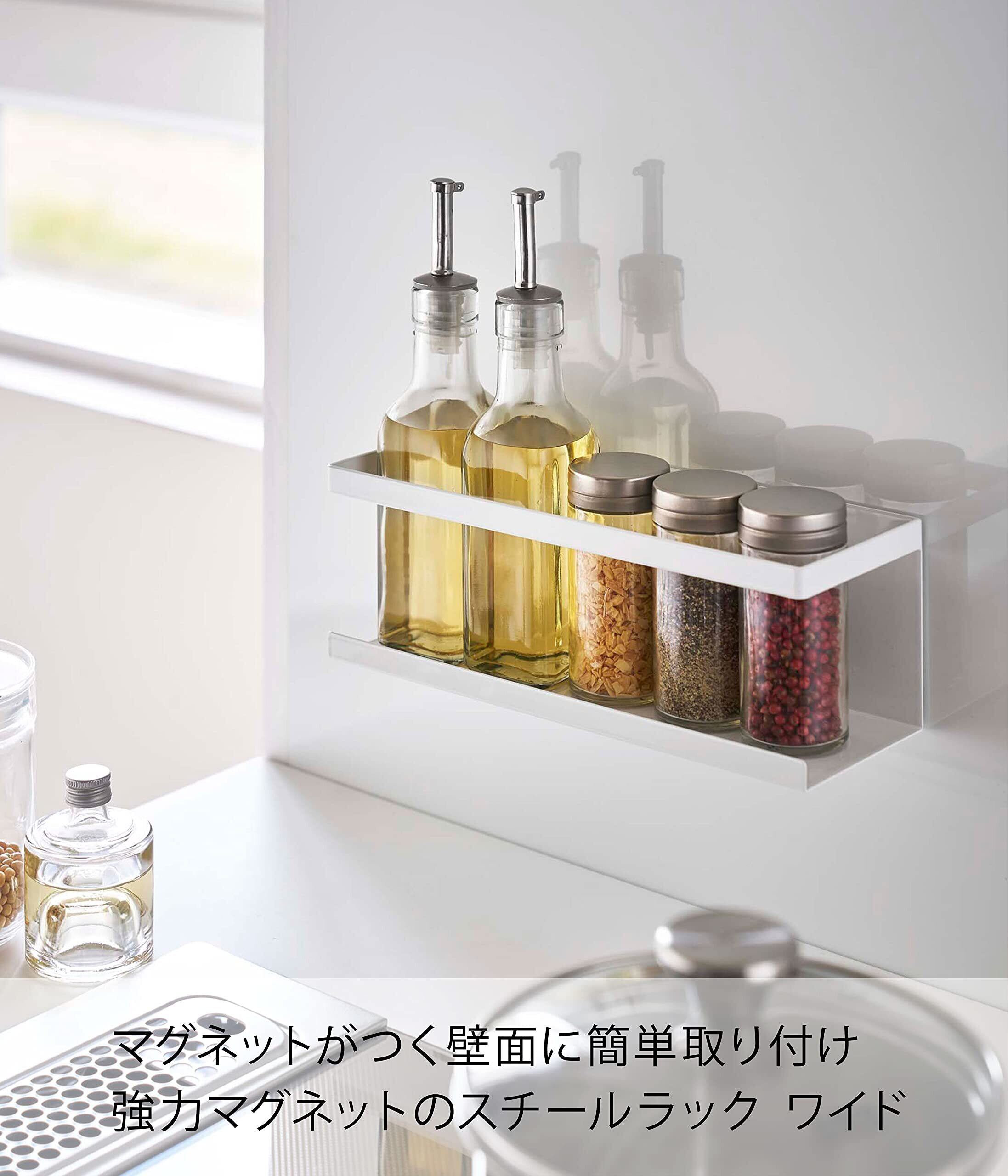マグネットが付くスチール壁面に簡単取り付けの調味料ラック。