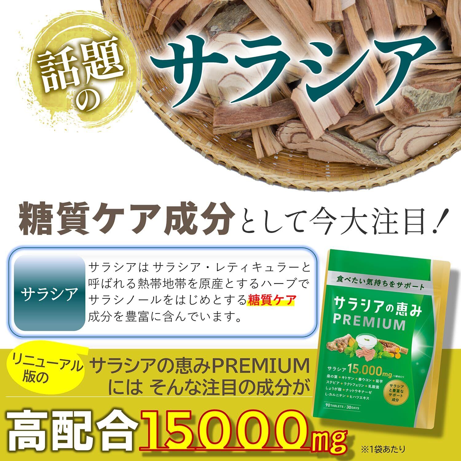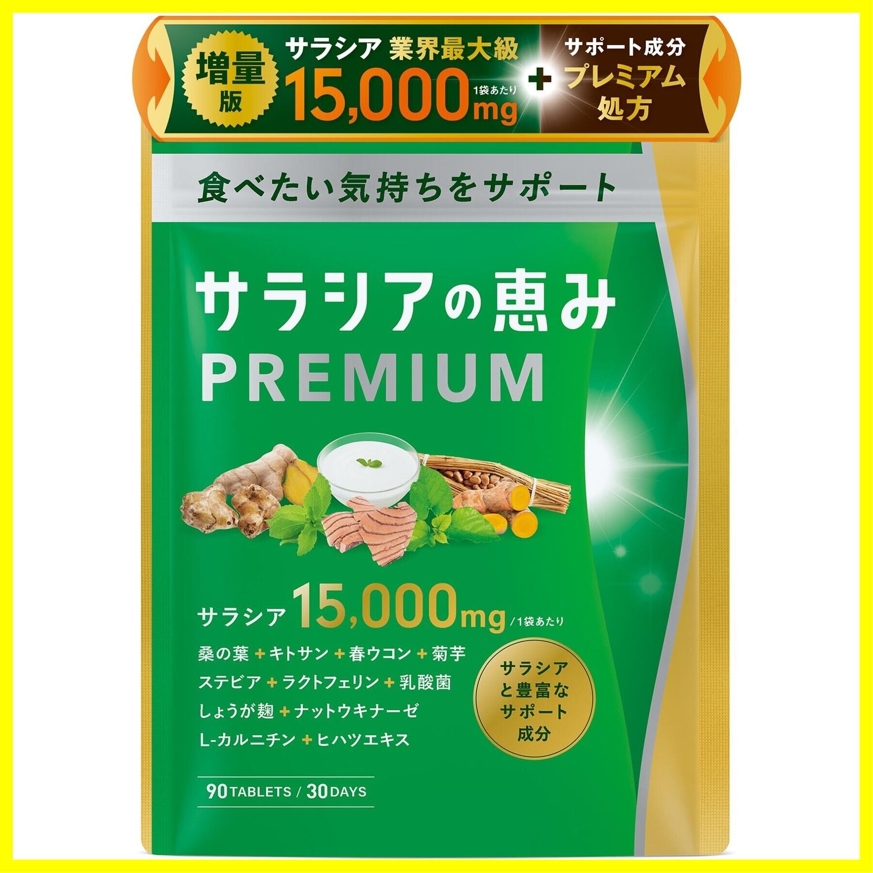 【サラシア増量版】 サラシアの恵みPREMIUM サラシア 15000mg リニューアル 増量 菊芋 春ウコン 桑の葉 乳酸菌 ナットウキナーゼ 90粒 30日分