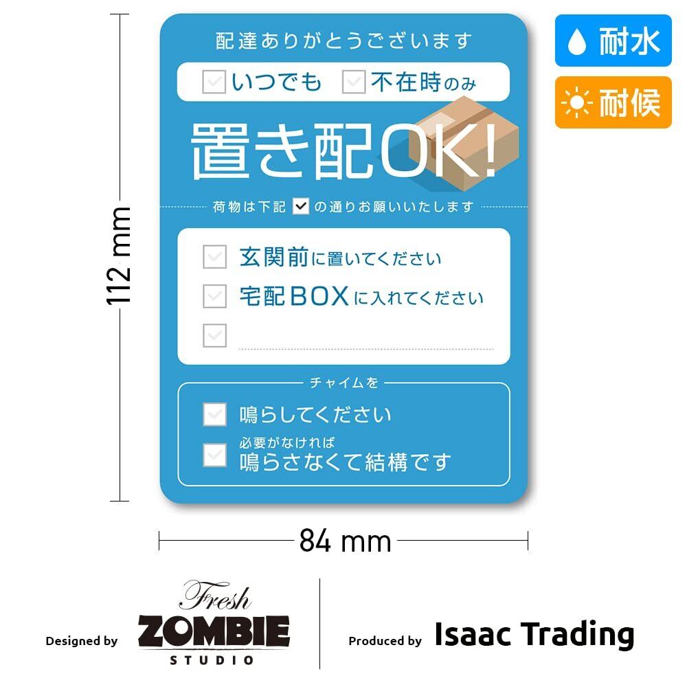 Isaac Trading 書き込みできる 置き配OK 宅配BOX ステッカー シール 耐水 耐候 宅配ボックス 宅配便 宅急便 郵便 配達物 荷物 不在 留守 置配 屋外 玄関 (84×112mm) (マットブルー)