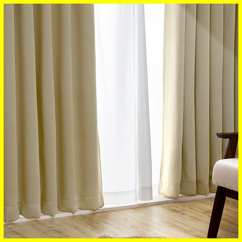 アイリスプラザ(IRIS PLAZA) 遮光度99.99%カーテン 幅100×丈210cm 1級遮光 タッセル付き しっかり厚手 節電&省エネに 断熱/防寒 洗濯機OK 2枚組 ベージュ