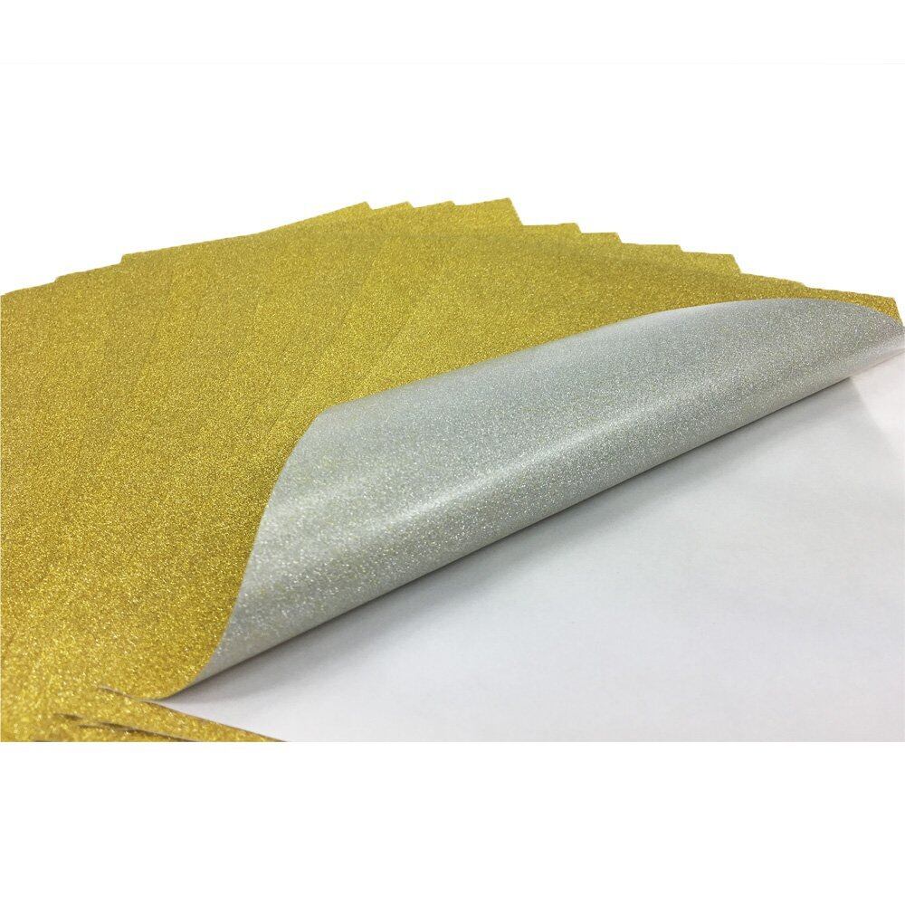グリッターシート/シールタイプ きらきら ラメで目立つ! A4サイズ 応援うちわ 素材 DIY手芸用 10枚セット (ゴールド)
