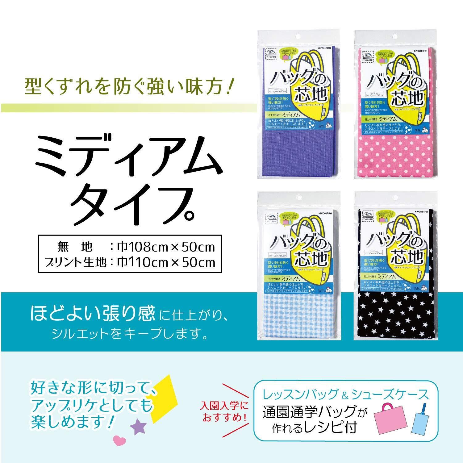 KIYOHARA サンコッコー バッグの芯地 ミディアム 巾110cm×50cm NV ネイビー 通園通学バッグが作れるレシピ付き SUN50-151
