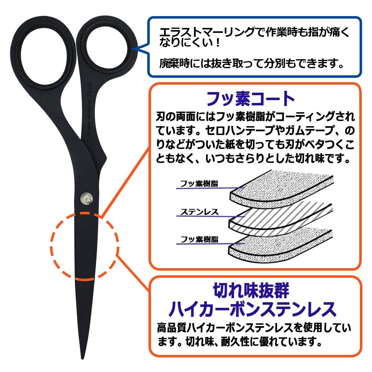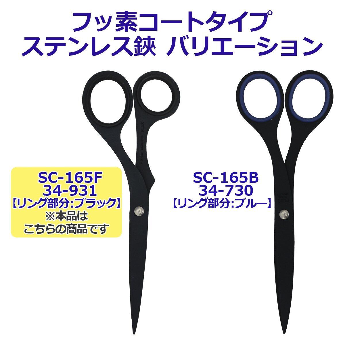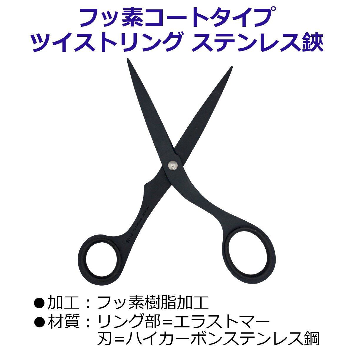 プラスはさみツイストリング ステンレス鋏エクストラ フッ素コート 粘着テープ のり ベタつかない BK SC-165F 34-931