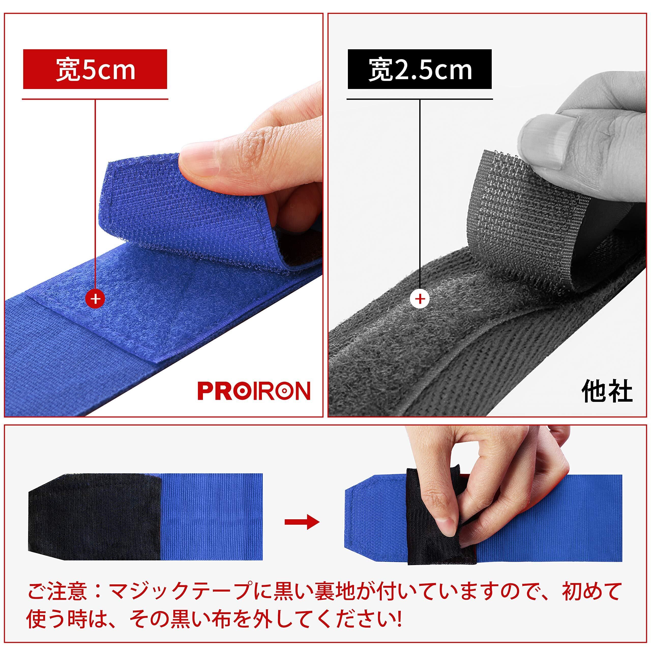 【優れたサポート マジックテープ式バンテージ 】:2.5cm幅のベルクロボクシング包帯とは異なり、5cm幅の特大ベルクロストラップと、安全なラップのための快適な親指ループ。ロゴクロスラベル、包帯、およびベルクロは3層のフルサイドステッチで、高耐久