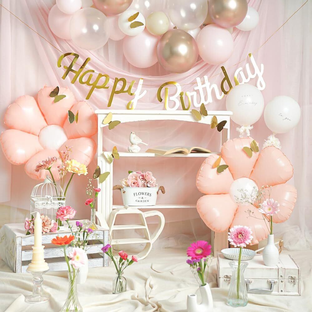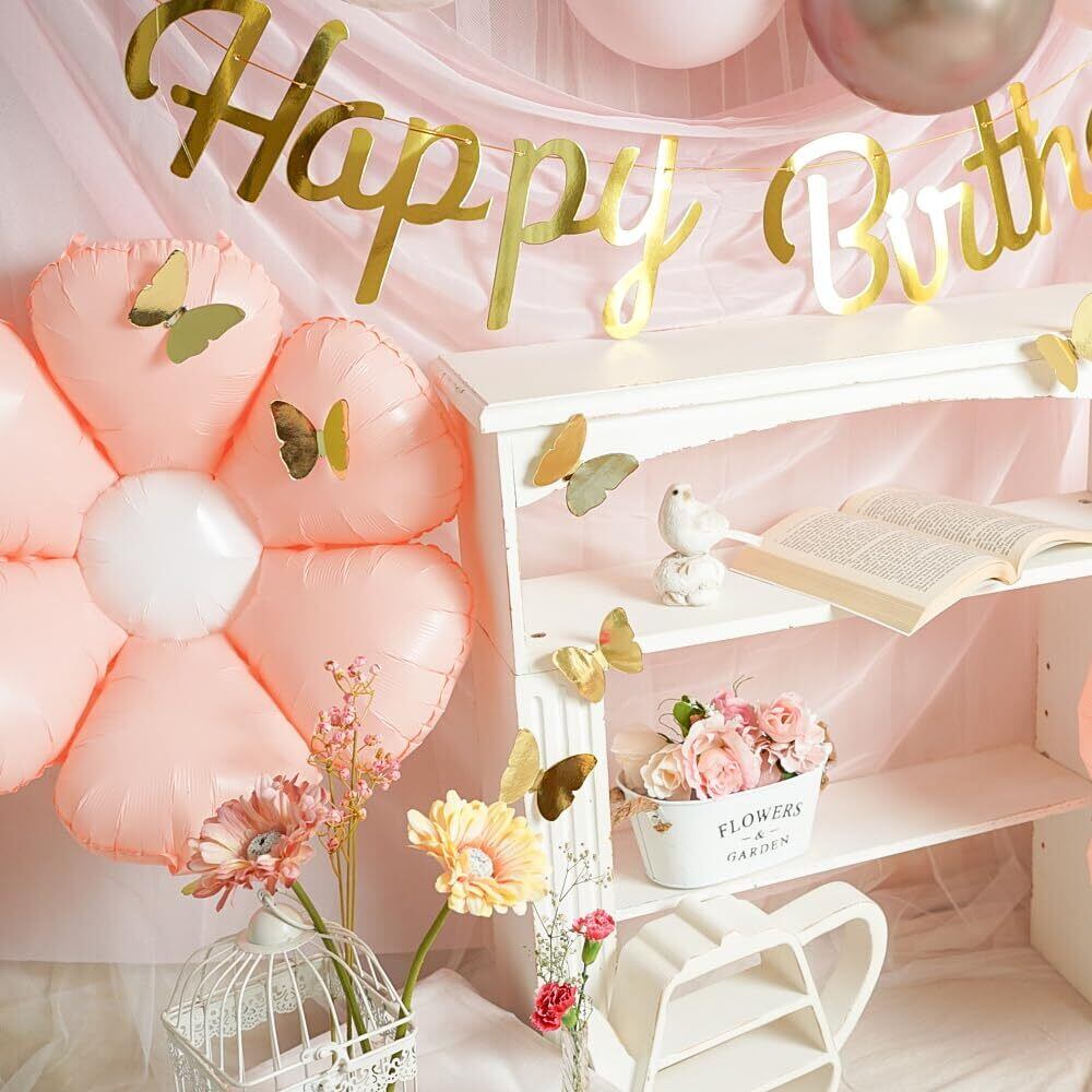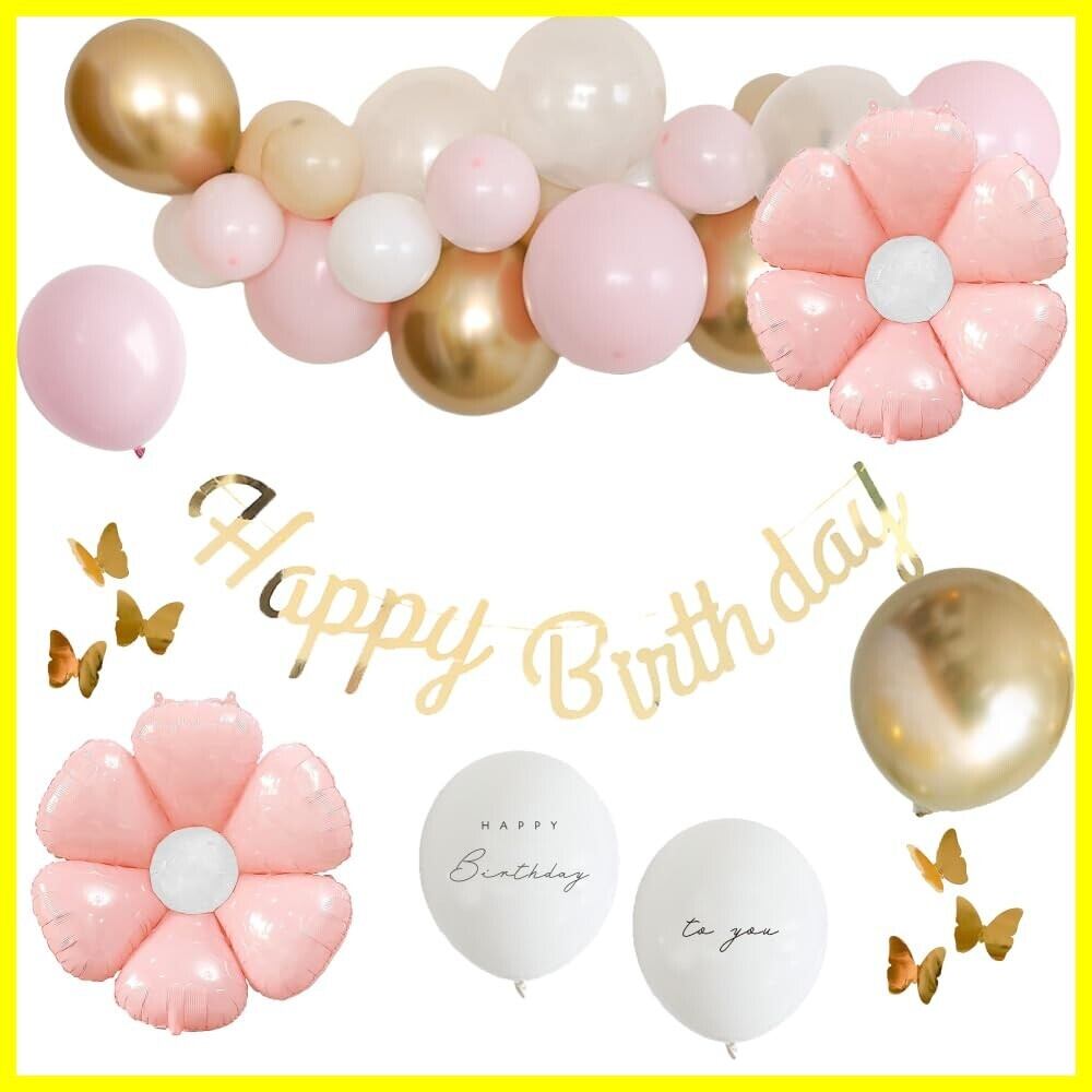 Hanamei ハナメイ バースデー デコレーション セット デイジー 花 フラワー バルーンガーランド バルーン 女の子 誕生日 飾り付け 装飾 パーティーキット 風船 (ピンク)