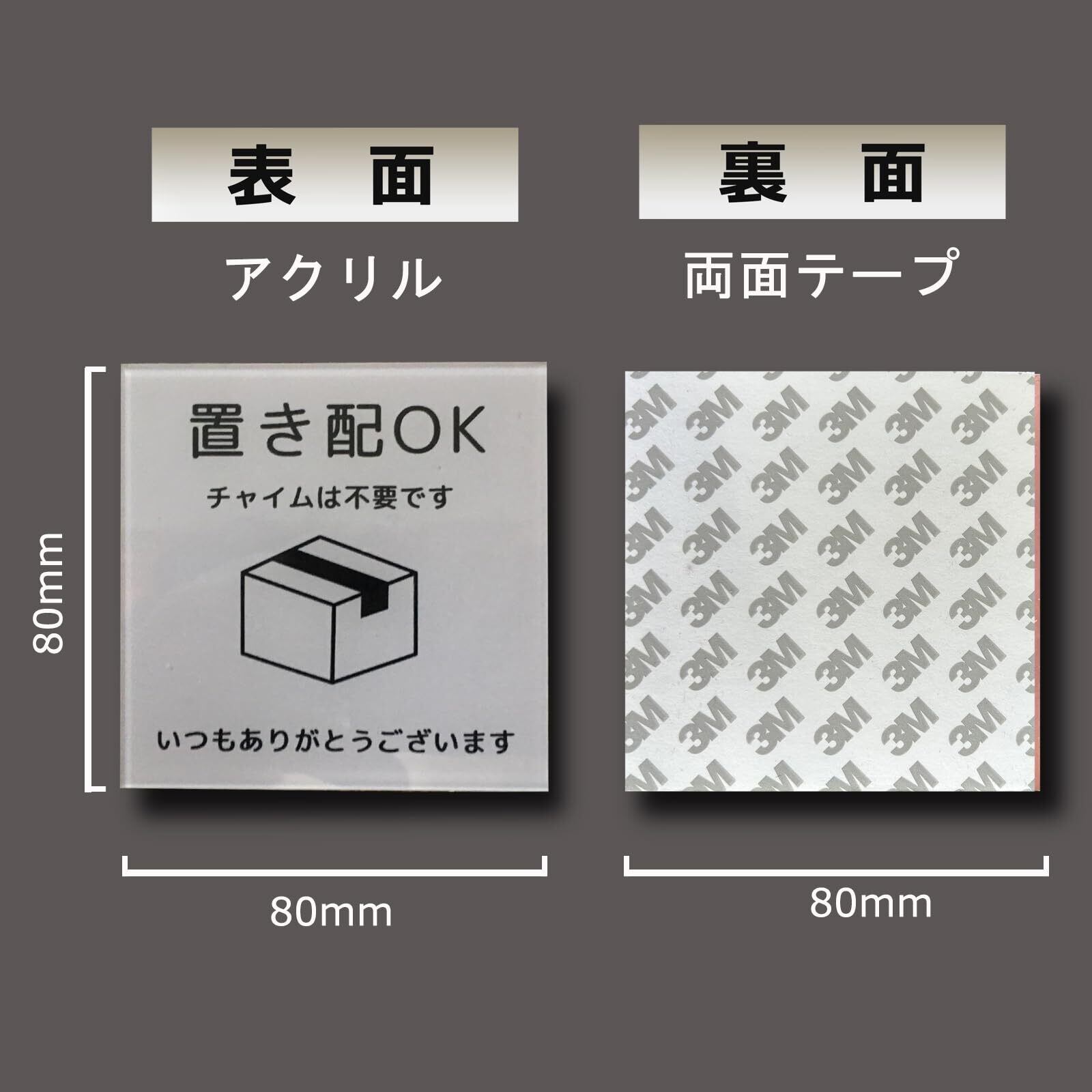 Seagron 置き配OK 宅配ボックス 宅配BOX プレート 両面テープ付き 置き配達 不在案内 再配達防止 2㎜アクリル製 おしゃれ ステッカー (グレー80×80㎜(1枚))