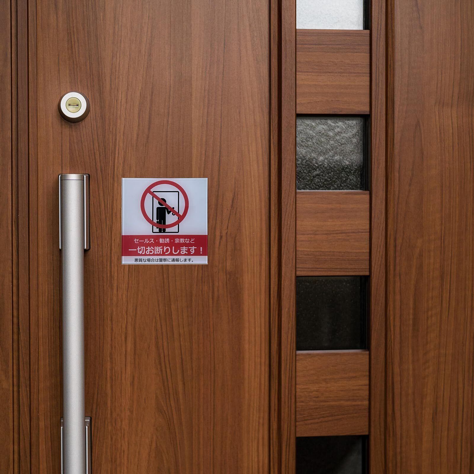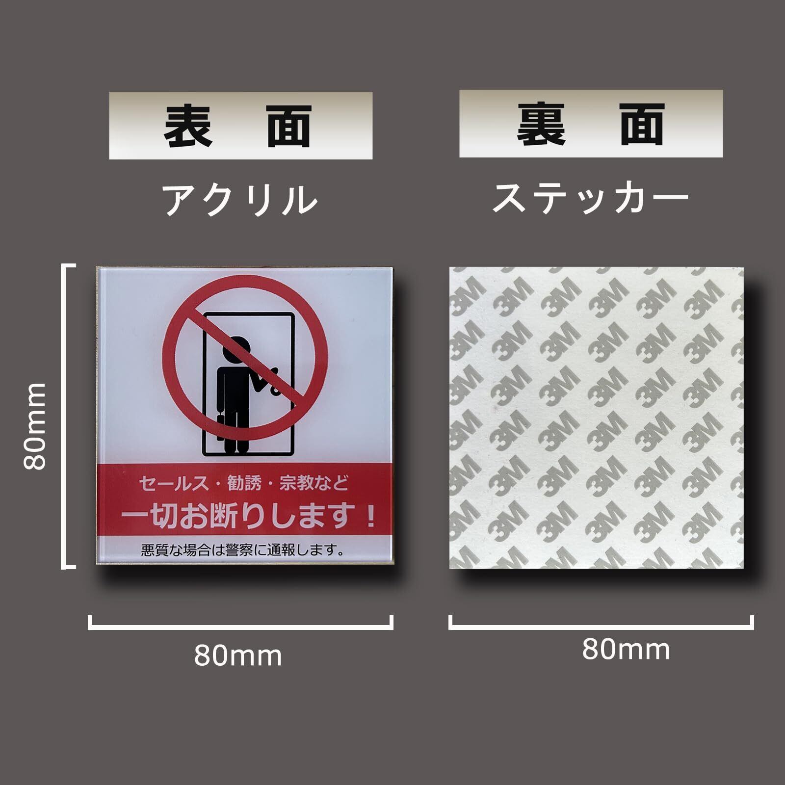 Seagron セールス 勧誘 宗教など一切お断りします(イラスト型) サインプレート 両面テープ付き 注意 2㎜アクリル製 おしゃれ 耐水 対候 ステッカー シール (ホワイト80×80㎜(1枚))…