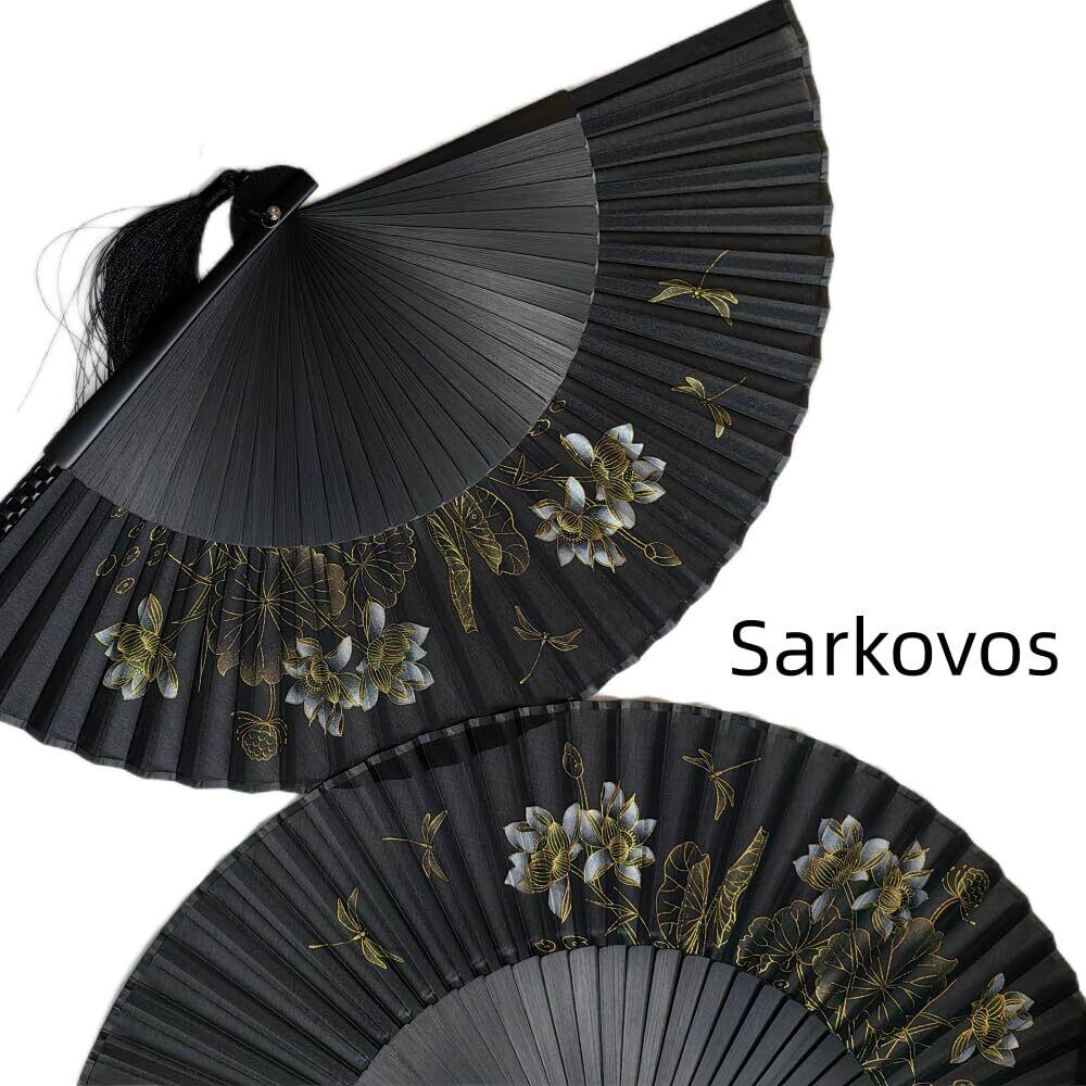 Sarkovos扇子 メンズ おしゃれ 高級扇子 プレゼント 父の日 花火大会用 海外 お土産 浴衣 着物 和小物 夏の祭り 歌舞伎小物 猛暑対策 お土産 (黒竹1)
