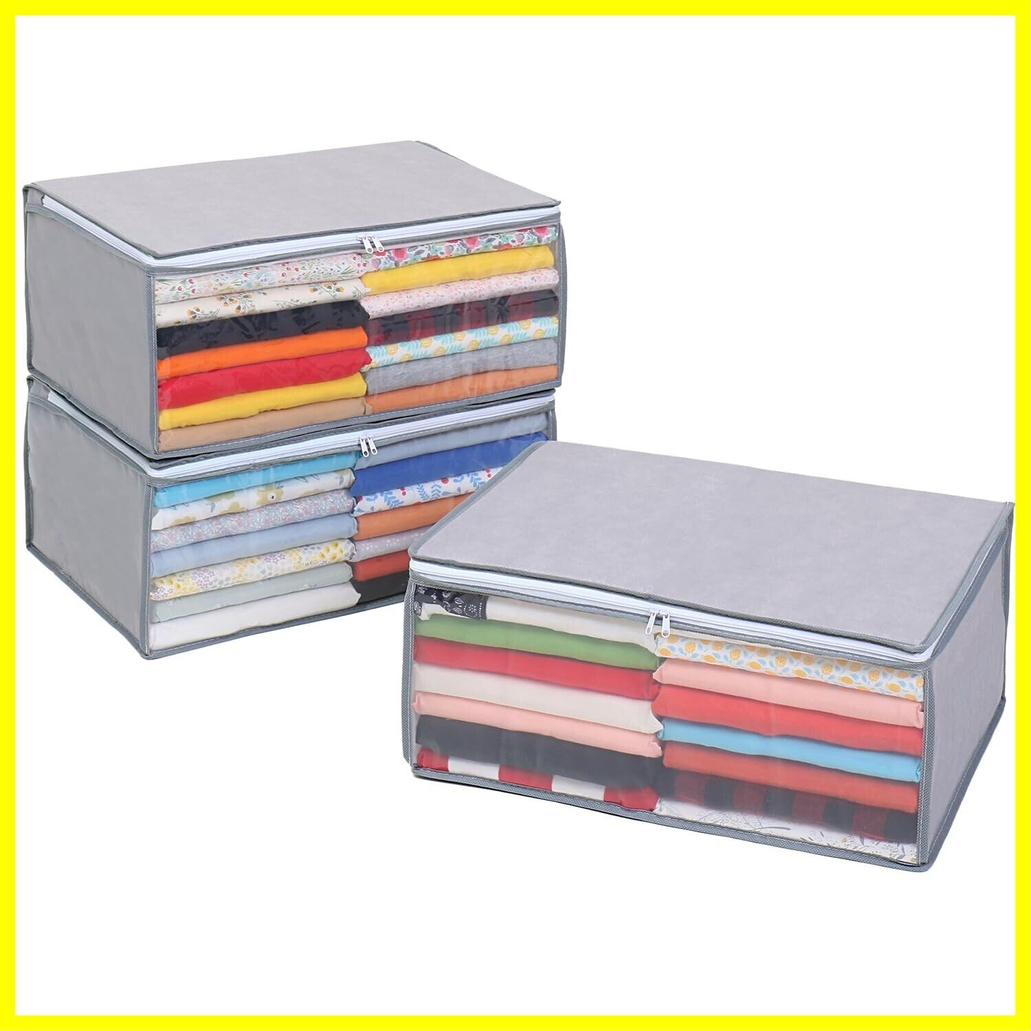 アストロ 衣類収納ケース 3枚組 通気性の良い不織布がホコリなどの汚れをガード 中身の見える透明窓付き 三方開きのファスナーで出し入れしやすい 衣装ケース 奥行35cm 洋服 衣類 小物 収納ボックス 蓋付き クローゼット 押入れ 保管 ほこり 対策 グレー 167-01