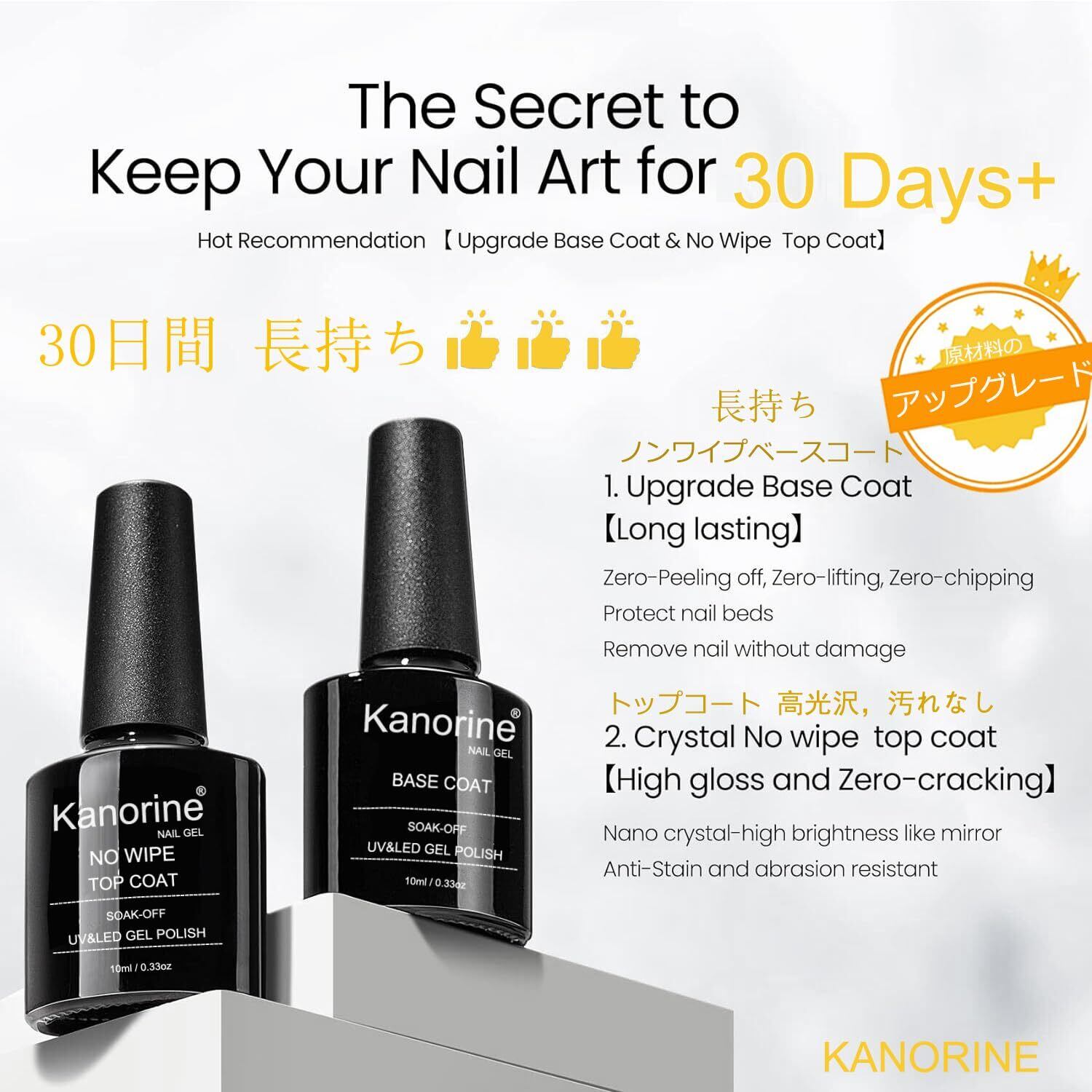 Kanorine ジェルネイル トップコート ベースコート 10mlx2 本セット ノンワイプ 拭き取り不要 長持ち 大容量 UV/LED対応 ベースジェル Base and Top Coat Gel