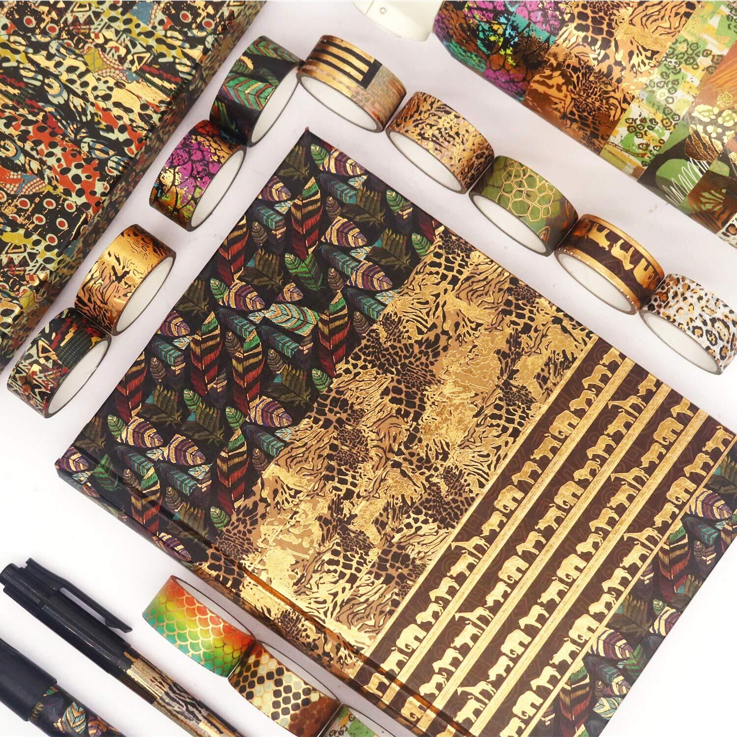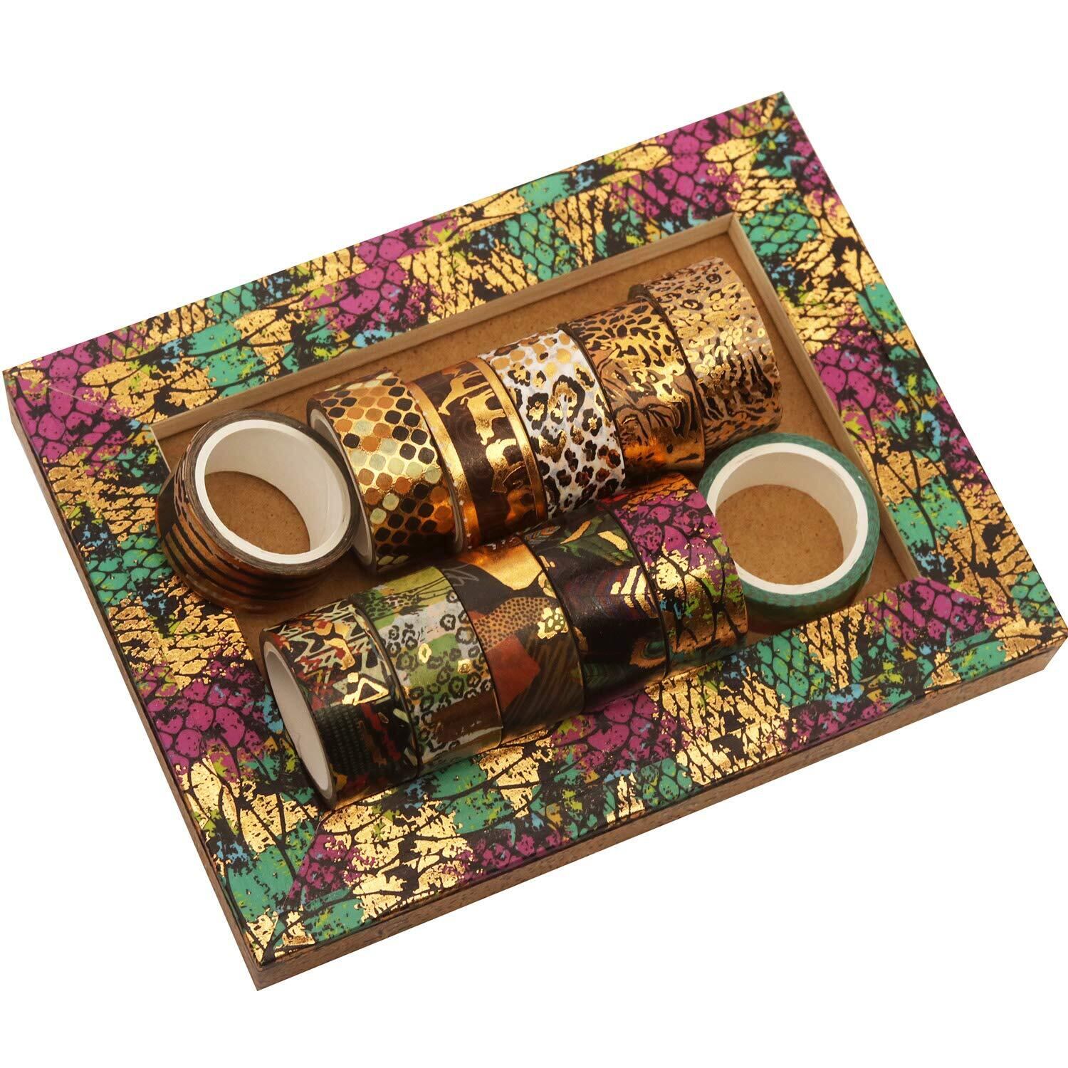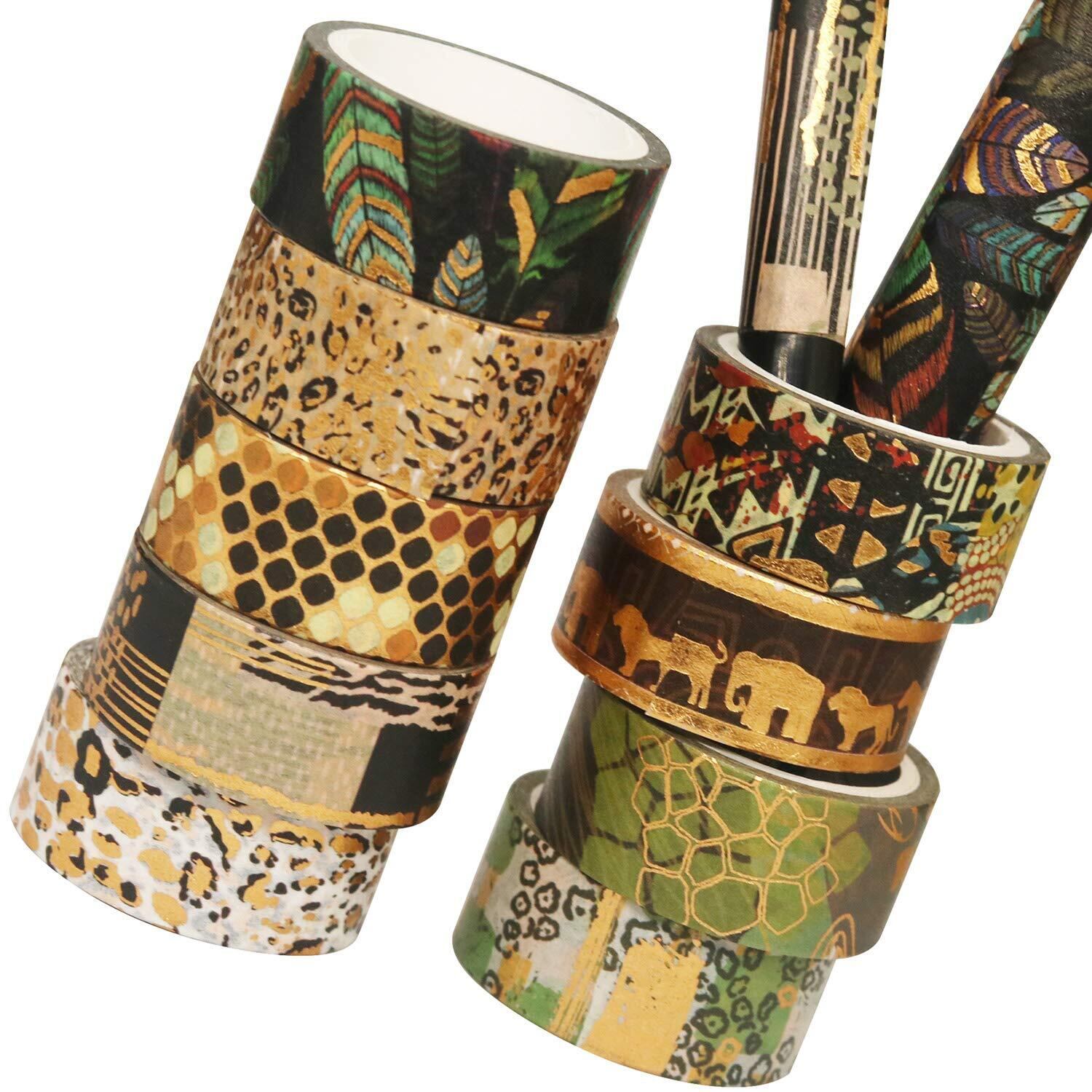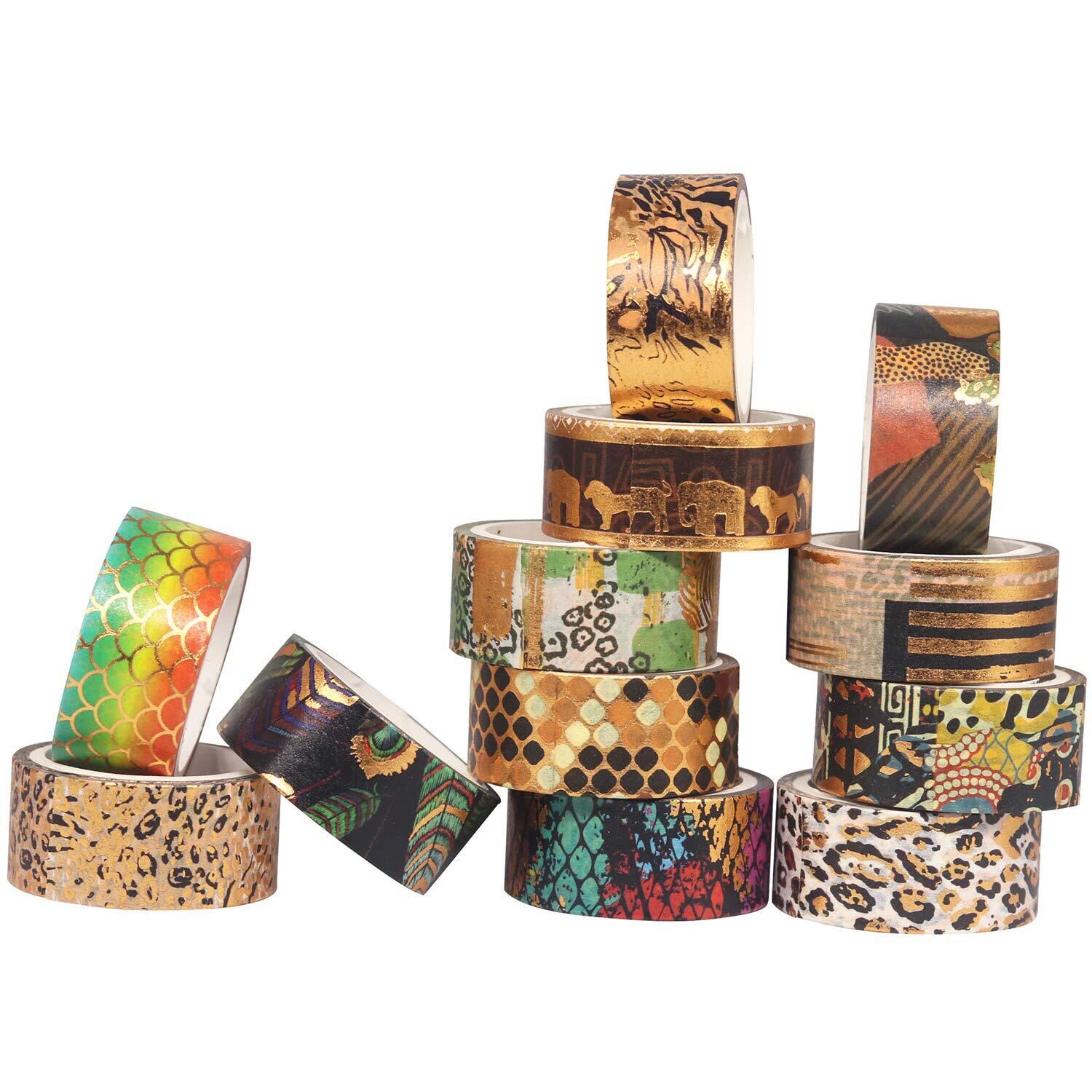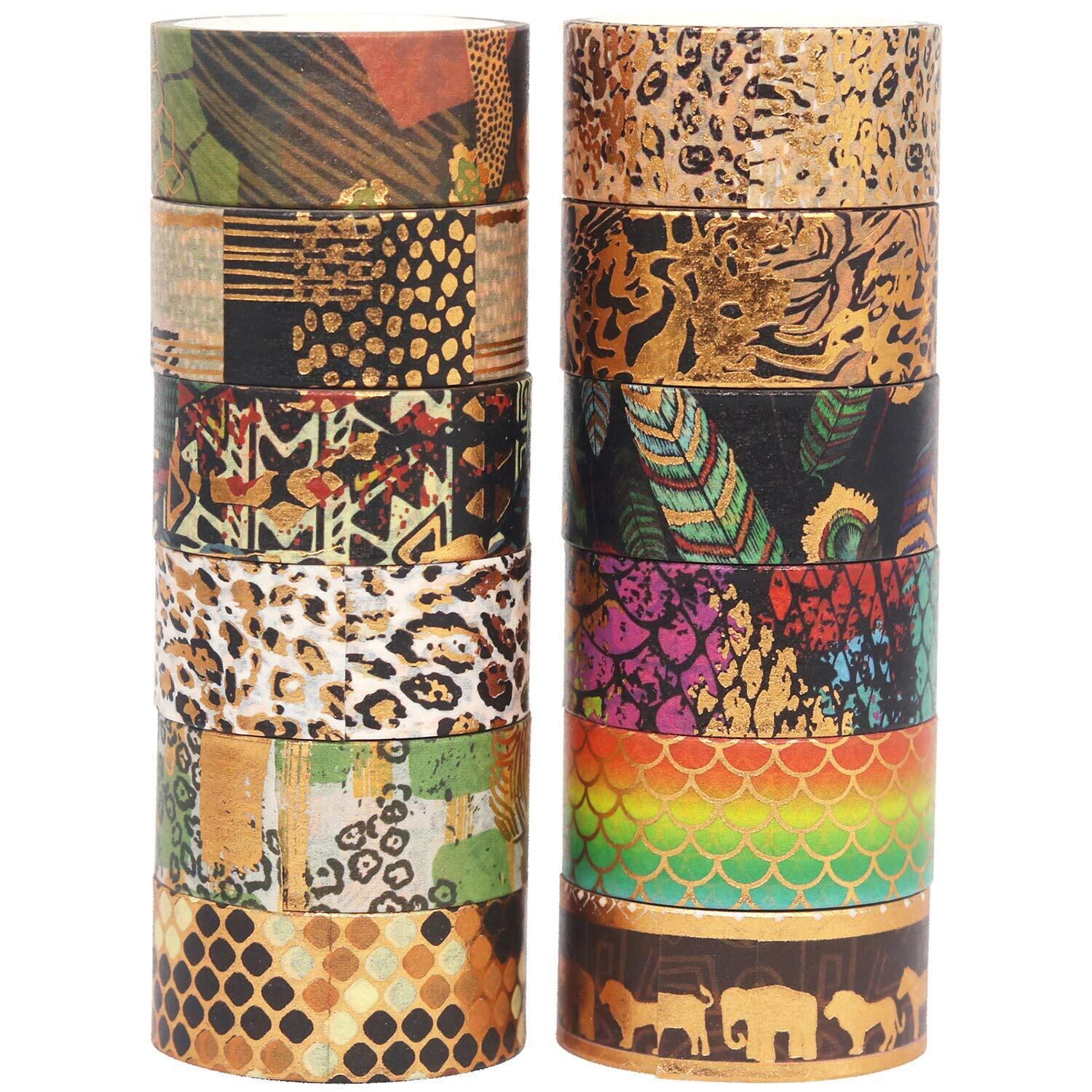 YUBX マスキングテープ 12個 セット 和紙テープ 野生動物 金箔押し DIYクラフト ジャーナル 手帳 プ ランナー スクラップブック ラッピング プレゼント装飾 (動物の皮柄)