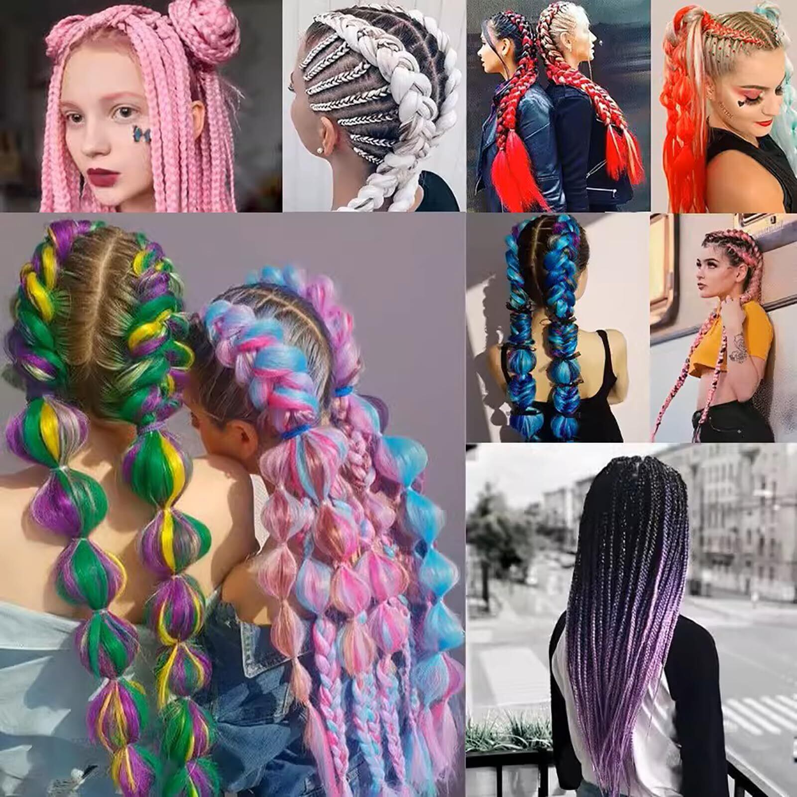ウィッグ エクステンション 30色 ヘアティンセル ブレイズ 編み込み カラーエクステ カラフル 輝く グラデーション 編み エクステ ストレート サラサラ オシャレ ヘアアクセサリー 盛りアップ ハロウィン 祭り グラデーション ぱっちん 簡単 エクステ (FR-04)