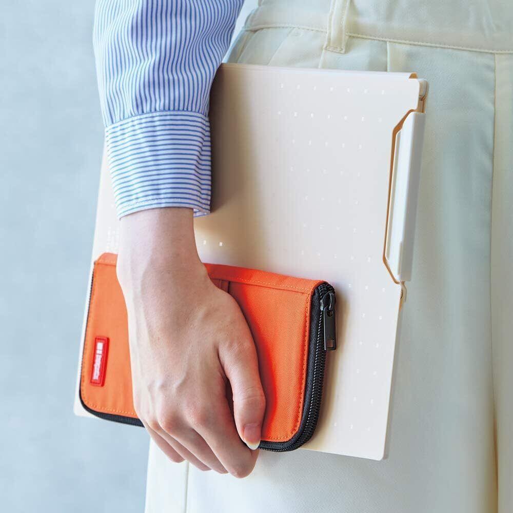 ペンも文具小物もたくさん入ってフラットに持ち運びできる。