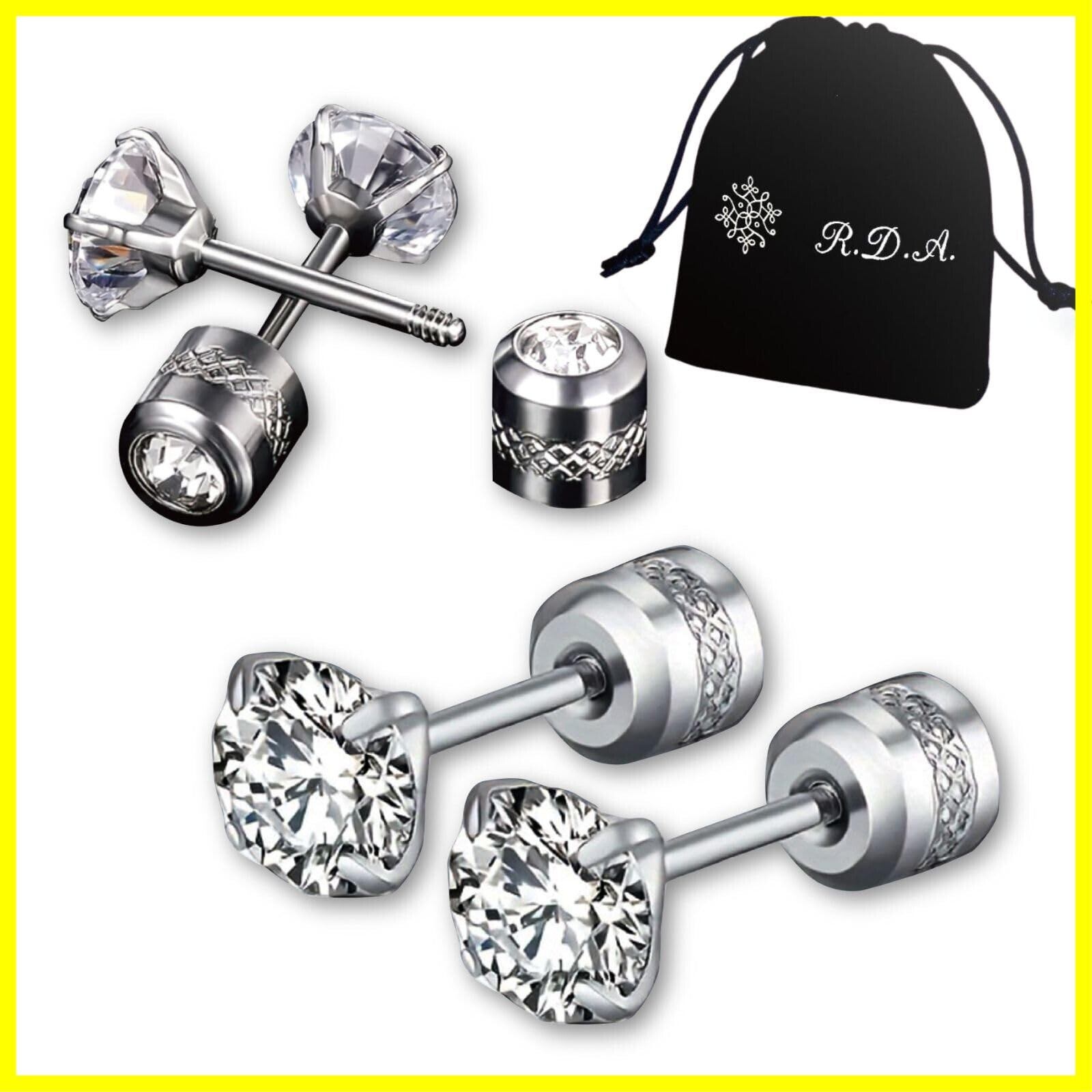 R.D.A. ステンレス ピアス 金属アレルギー対応 つけっぱなし ファーストピアス 3mmと5mmのセット 両耳用