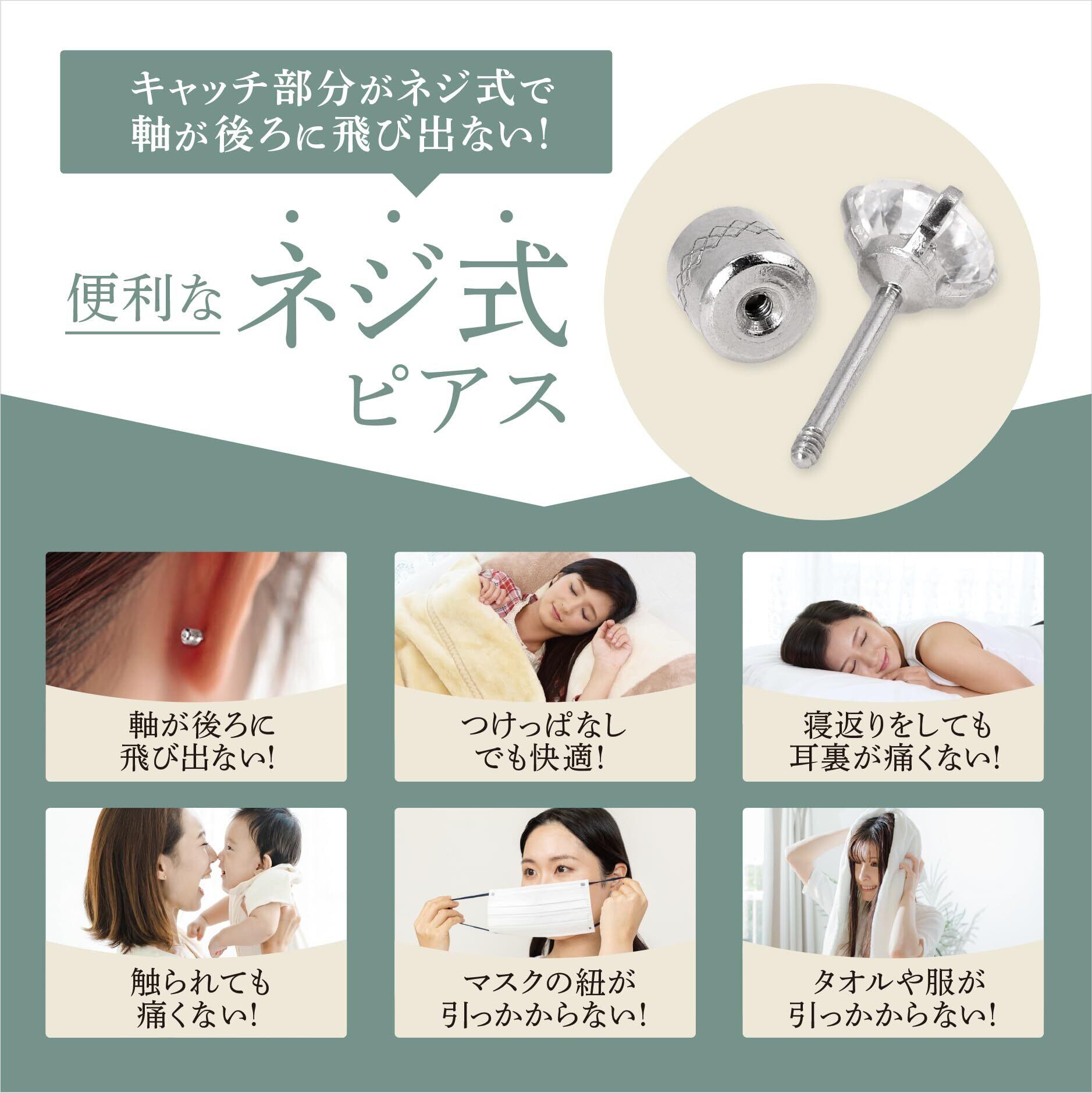 《キャッチがねじ式のスタッドピアス!!》 ・ねじ式のキャッチは外れにくいので、付けたままで寝がえり打っても耳裏に刺さらないんです!
