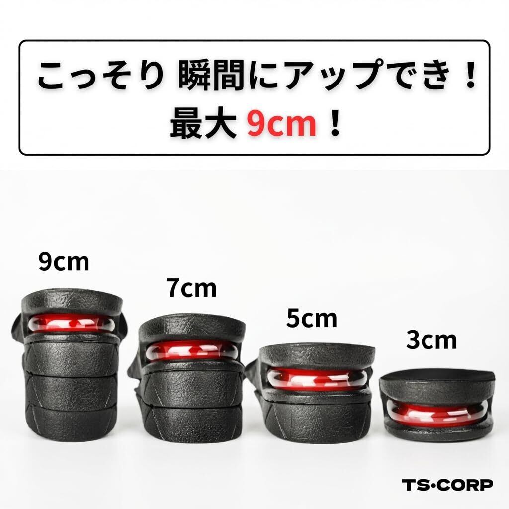 【TS・CORP】インソール 身長アップ【最大9cm】中敷22.5cm~27cm 男女兼用 4層構造 アップ エアクッション吸収 ヒールアップ シークレットインソール ブラック 黒