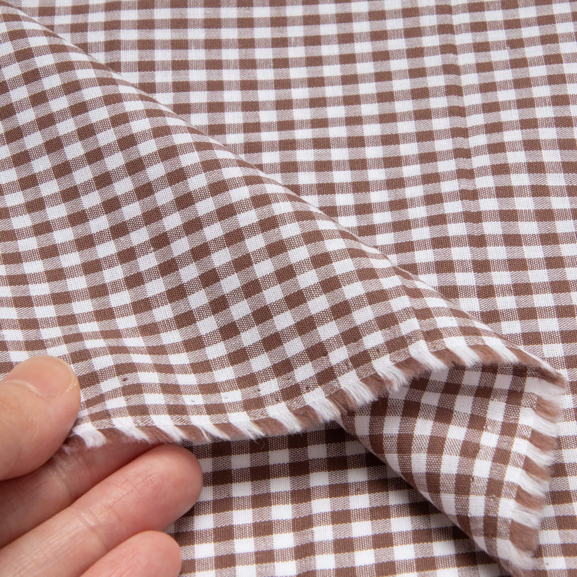 KIYOHARA ギンガムチェック3mm 生地 シャンブレー 薄手 約110cm巾×1mカット Col.BR ブラウン G1001-1