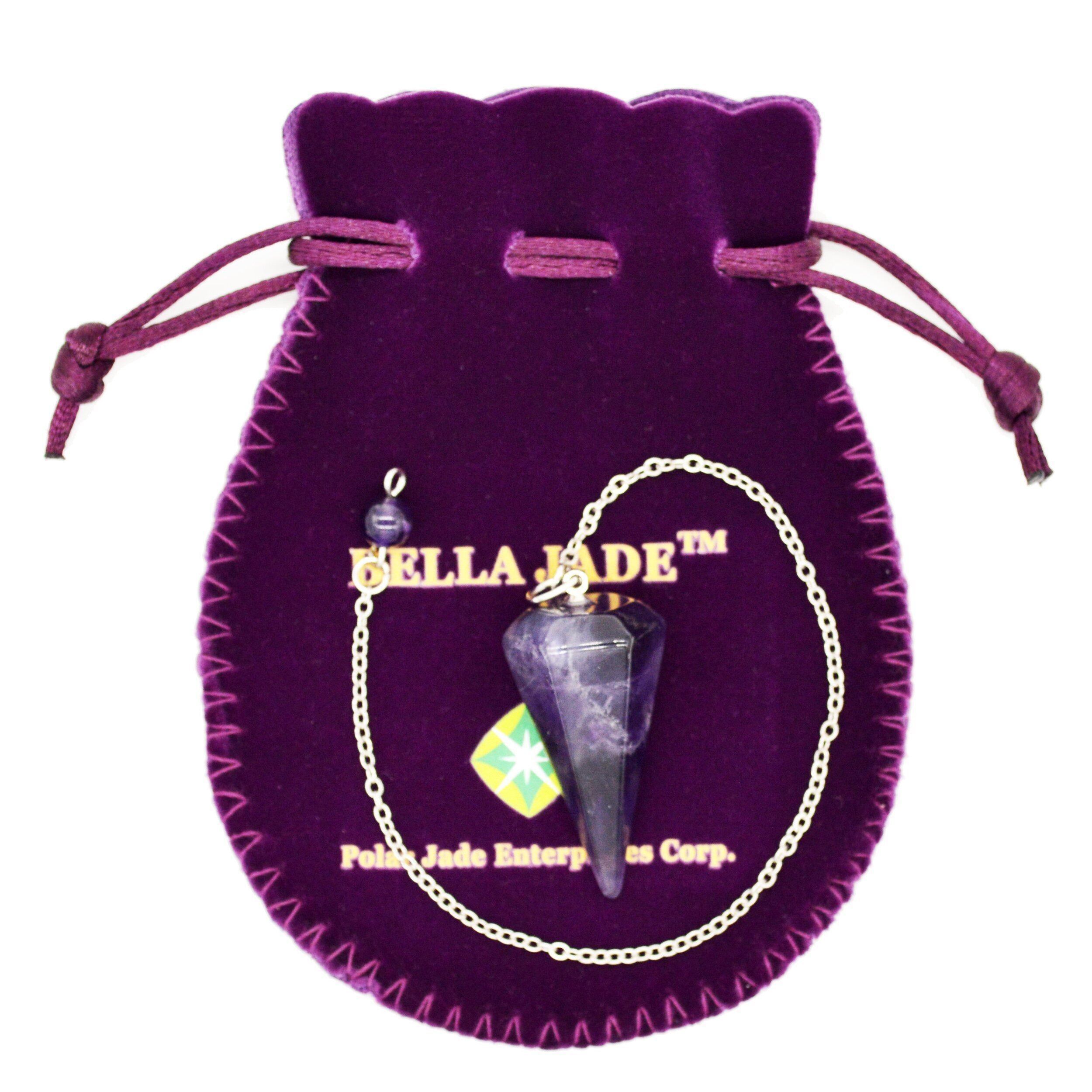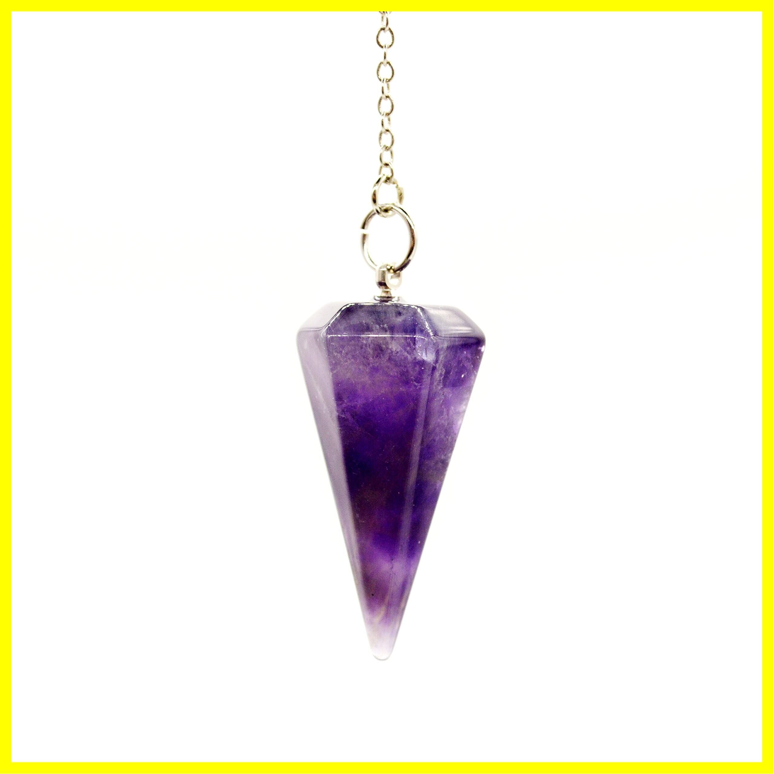 [Bella Jade] 天然石パワーストーン ペンデュラム振り子、 ダウジング風水占い用、 天然紫色アメジスト(紫水晶)製、ヒーリングストーン チャウラストーン六角錐 6面カット、金属チェーン付き