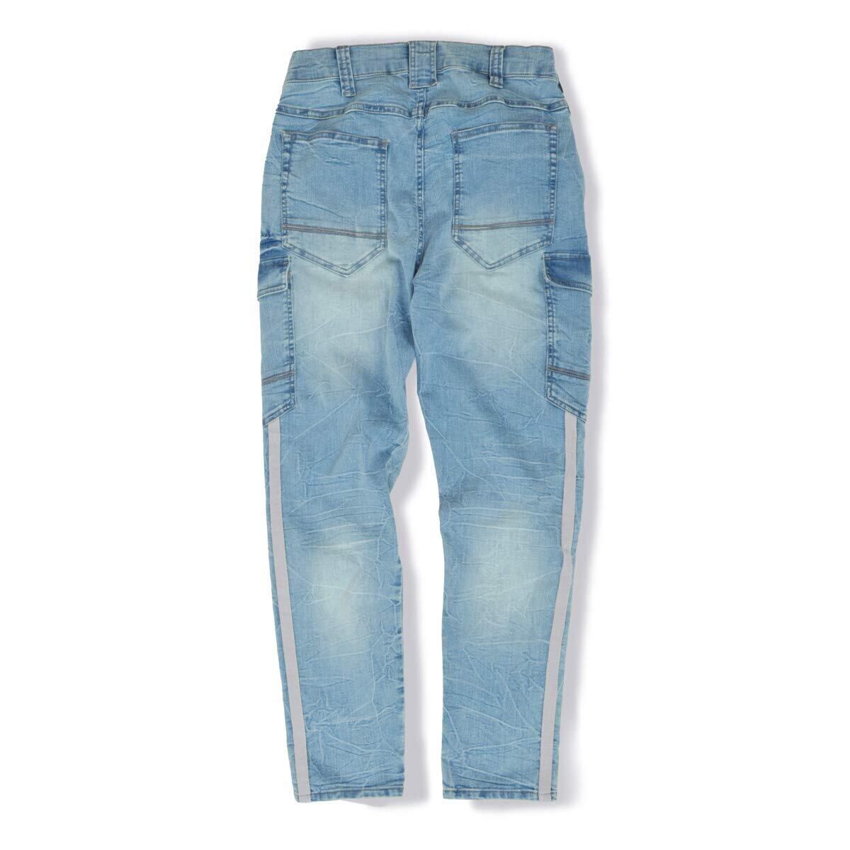 ストレッチデニムカーゴパンツはGCA712より少し細身の作りとなっております。ヒップまわりはゆったり。膝から裾にかけてさらにギュっとテーパード。膝から裾にかけてブラックのライン入り!