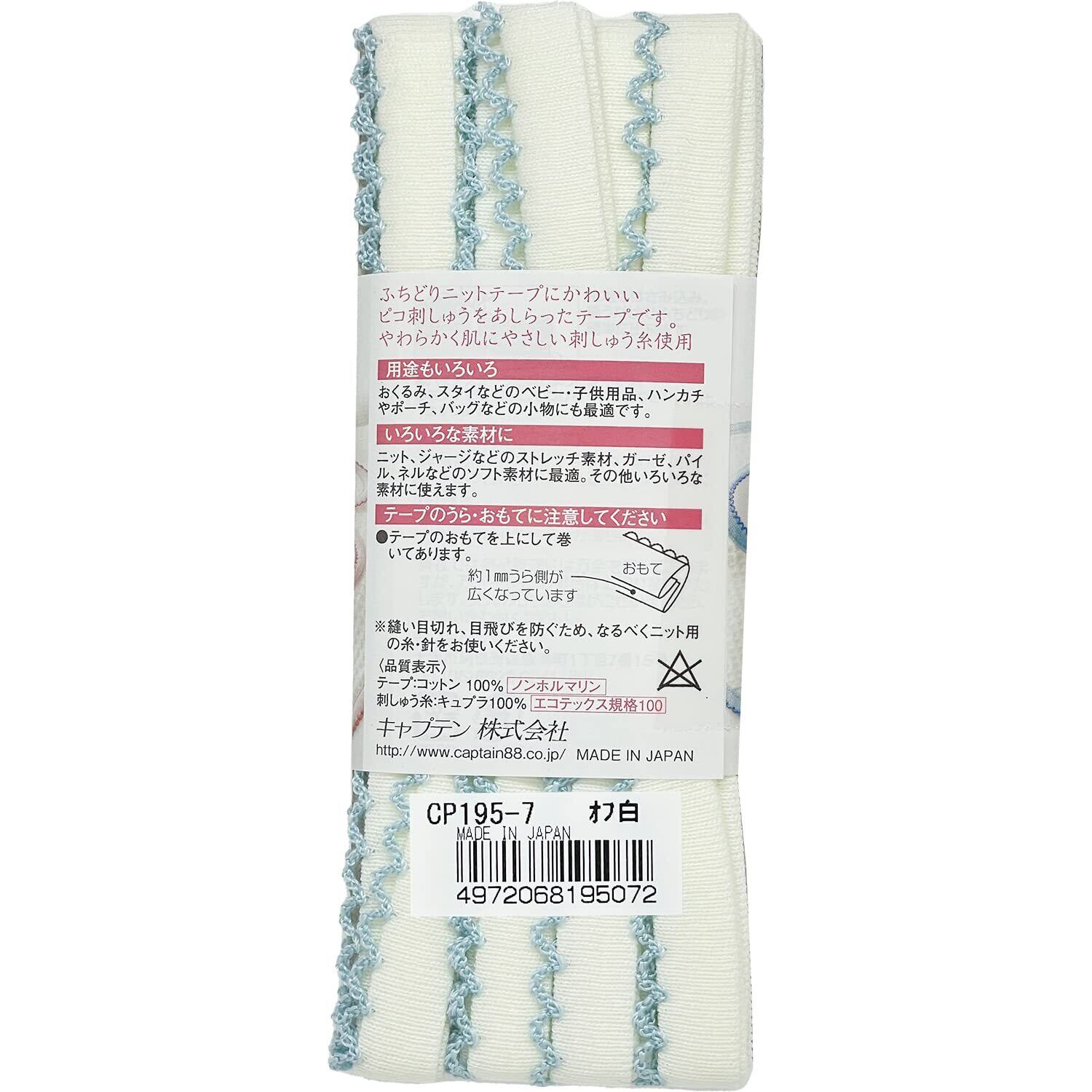 CAPTAIN88 キャプテン Picot ピコ ふちどり ニット テープ 11mm幅×2m巻 #7 オフホワイト×水色 CP195