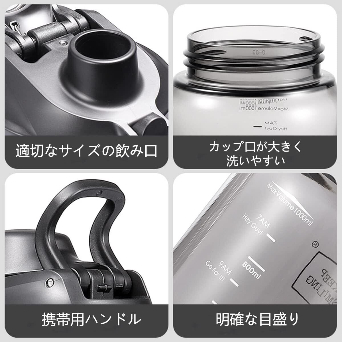 水位目盛りと励ましのテキスト:目盛りは、毎日の水分摂取量の測定に最適です。一日を通して水分補給をし、十分な水を飲むことを思い出させます。そして、ボトルには対応する励ましのテキストが刻まれています。
