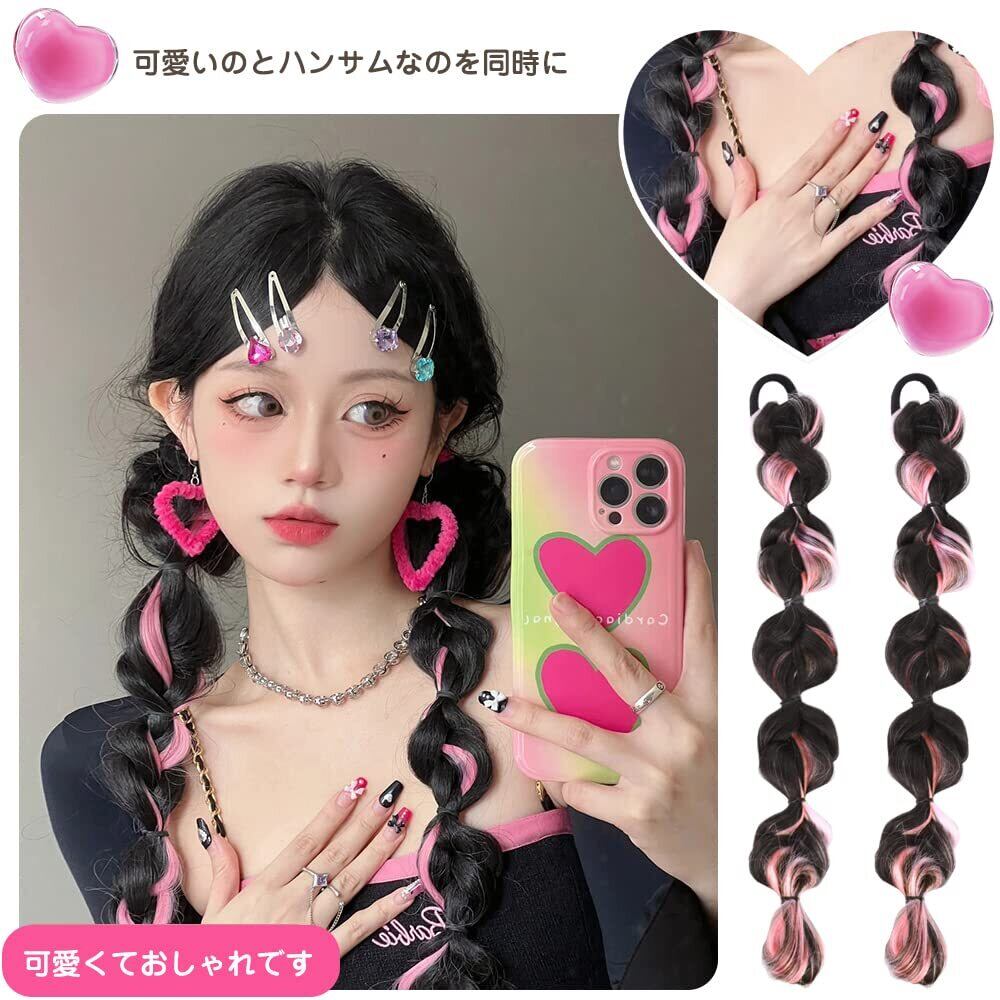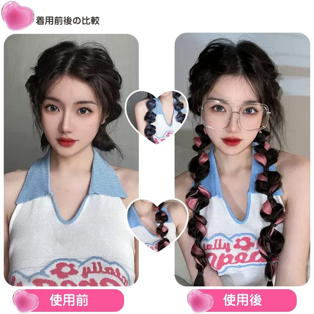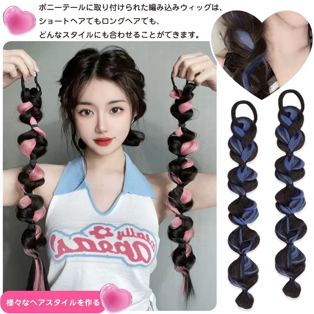 セット内容:ヘアエクステ 三つ編み ウィッグ 2個セット カラーは:ヘイズブルー長さ:約35cm 素材:ハイテクトシルク 伸縮性のあるヘアエクステンションで、ヘアロープのように髪に結ぶだけで。髪にボリュームがあり、質感があり、かつらであることを感じさせない。