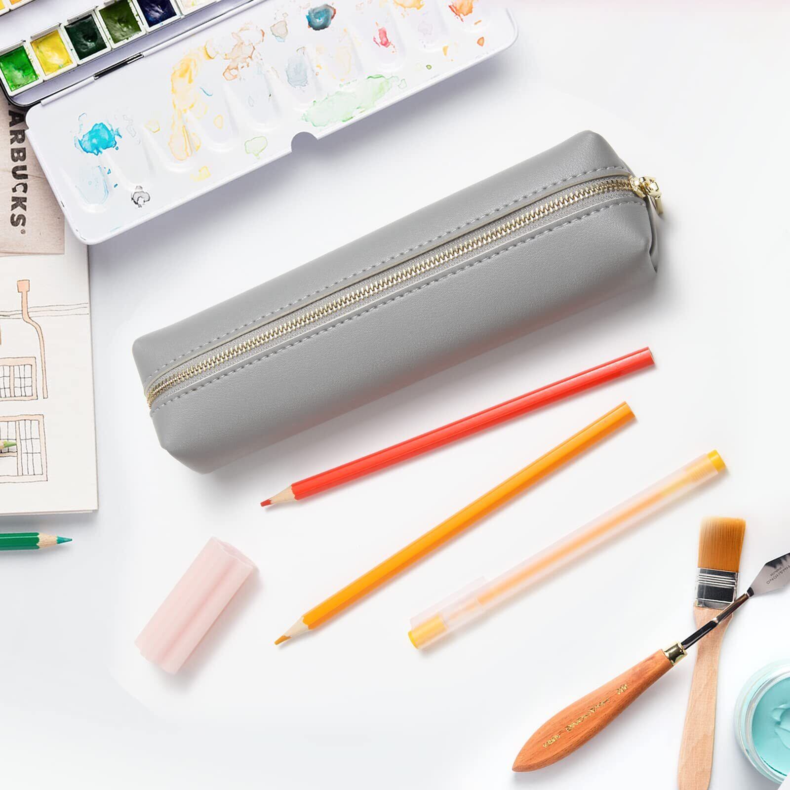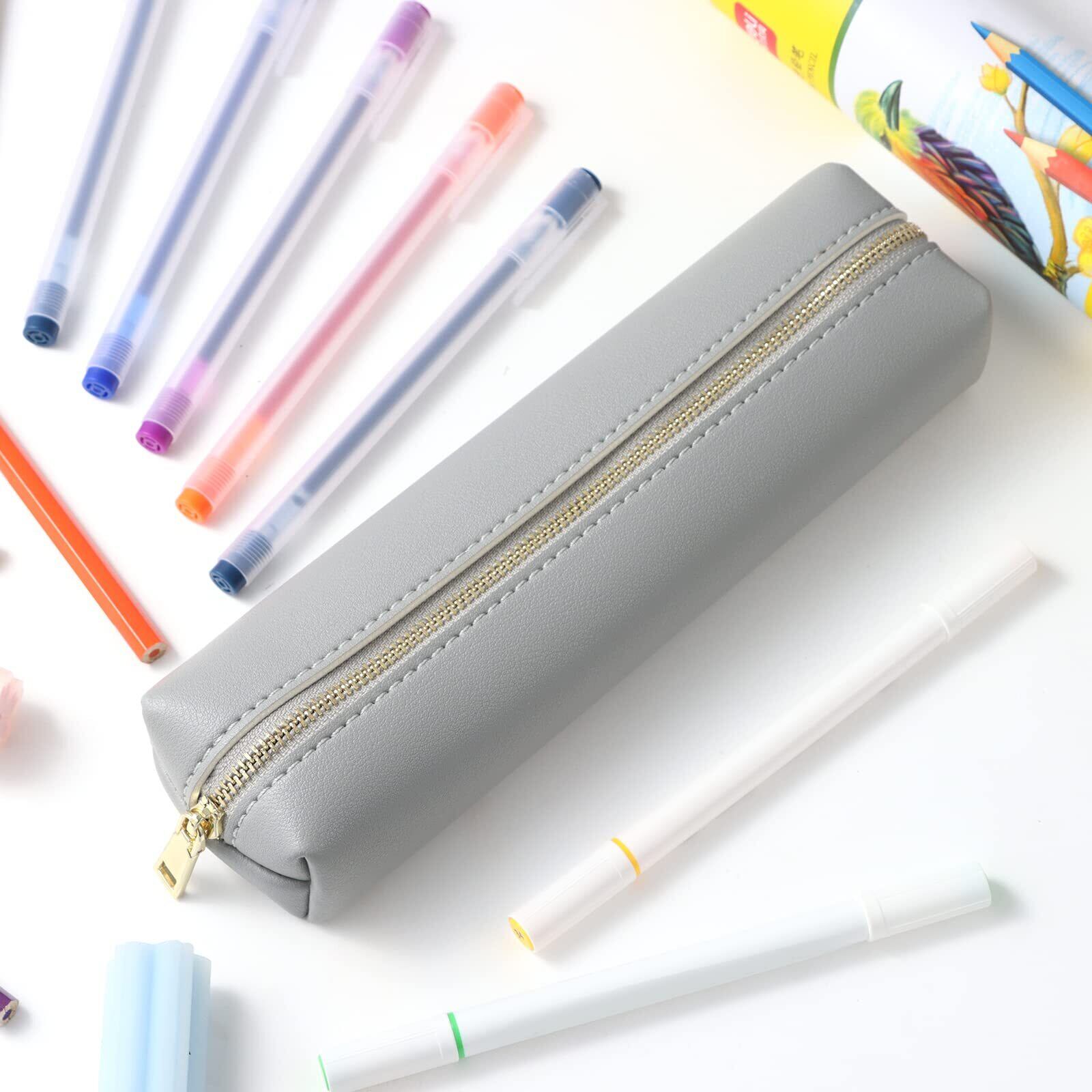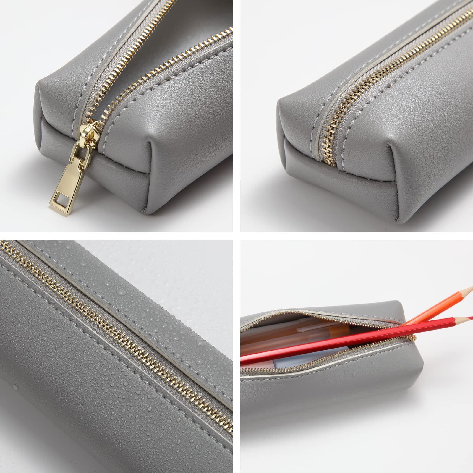 COGICOGI 筆箱 おしゃれ ペンケース シンプル 女子 男子 学生 大人 かわいい 大容量 PUレザー製 (M-グレー)