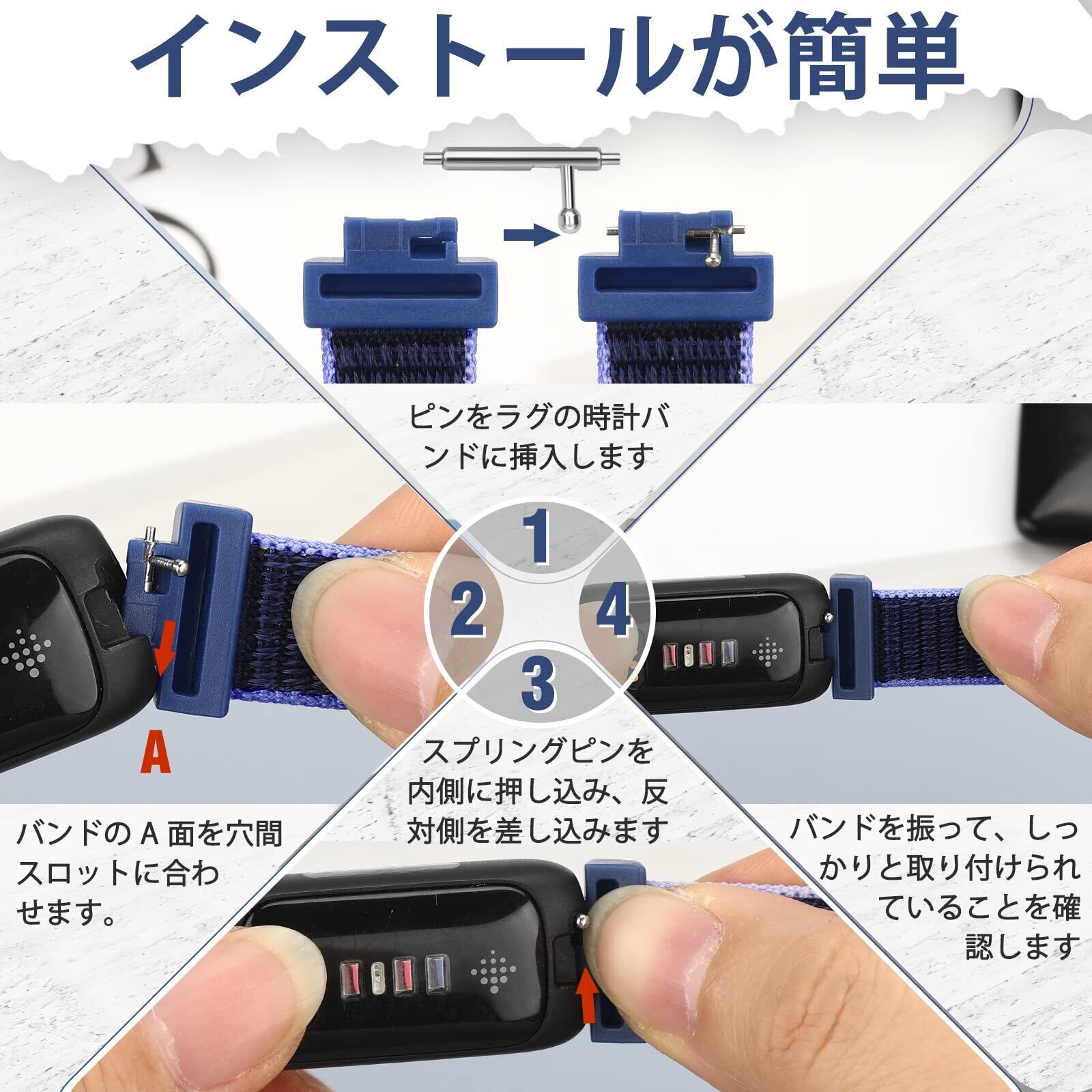 【取り付けと取り外し】--- inspire 3 スポーツ ウォッチ バンドは、両端にクイック リリース スプリング バーが付いており、時計のインターフェイスに正確かつ安全にロックされます。 ナイロンバンドの脱落や緩みを効果的に防ぎます。 余分なツールは必要ありません。
