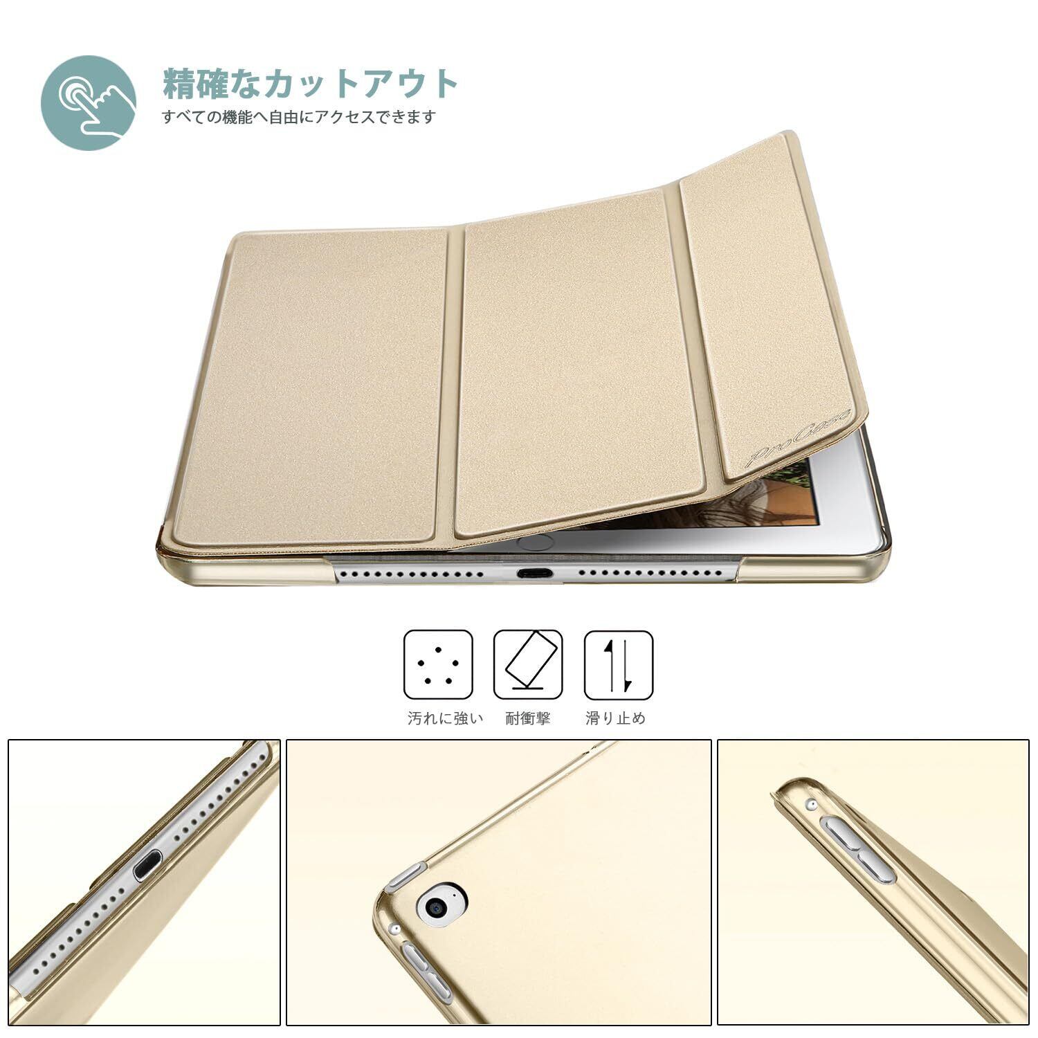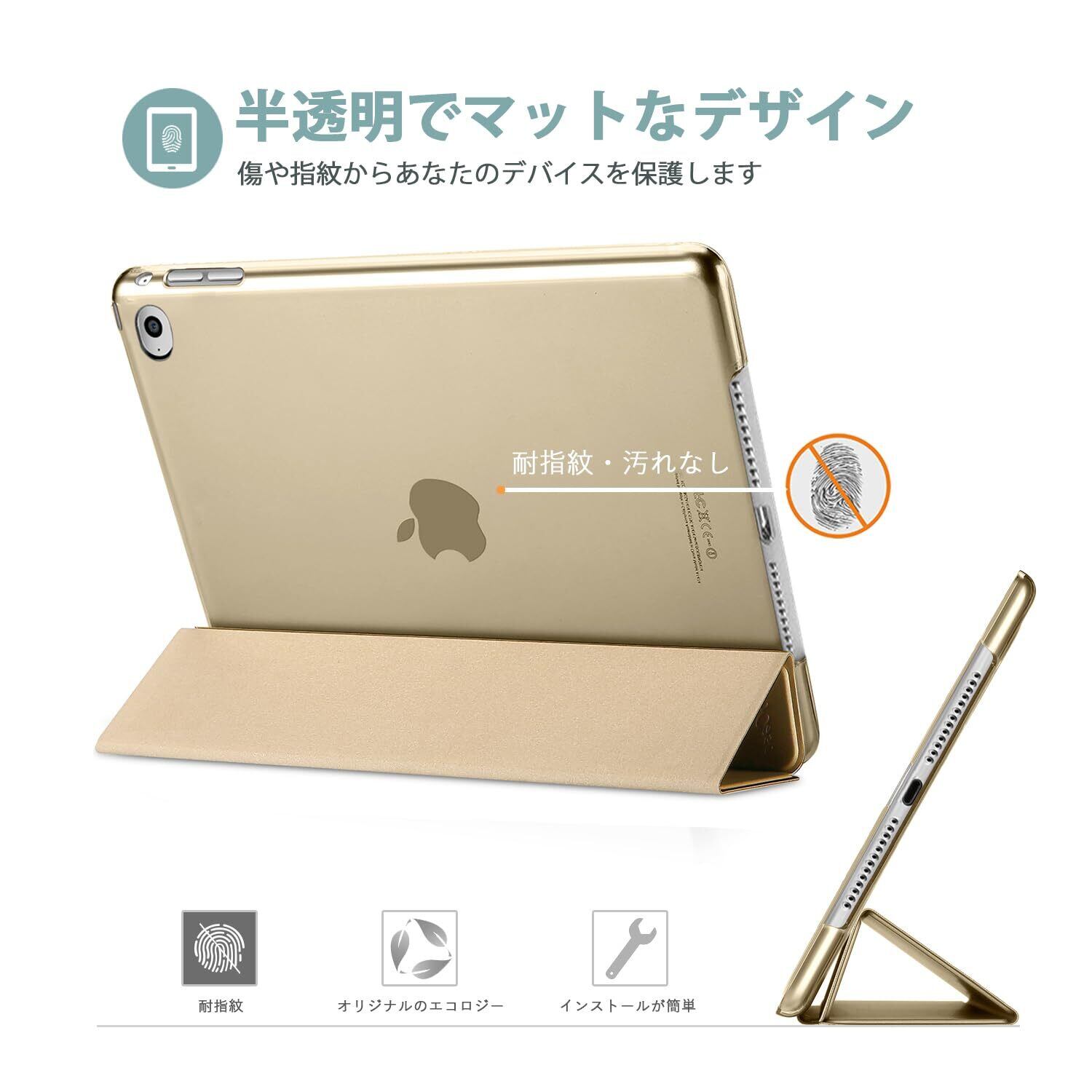 ProCase iPad mini 4 ケース(A1538 A1550 A1546) オートスリープ/ウェイク機能 三つ折りスタンド スマート 超スリム フォリオ保護ケース 半透明フロスト バックカバー 対応機種:iPad mini 4世代 7.9" (2015)-ゴールド