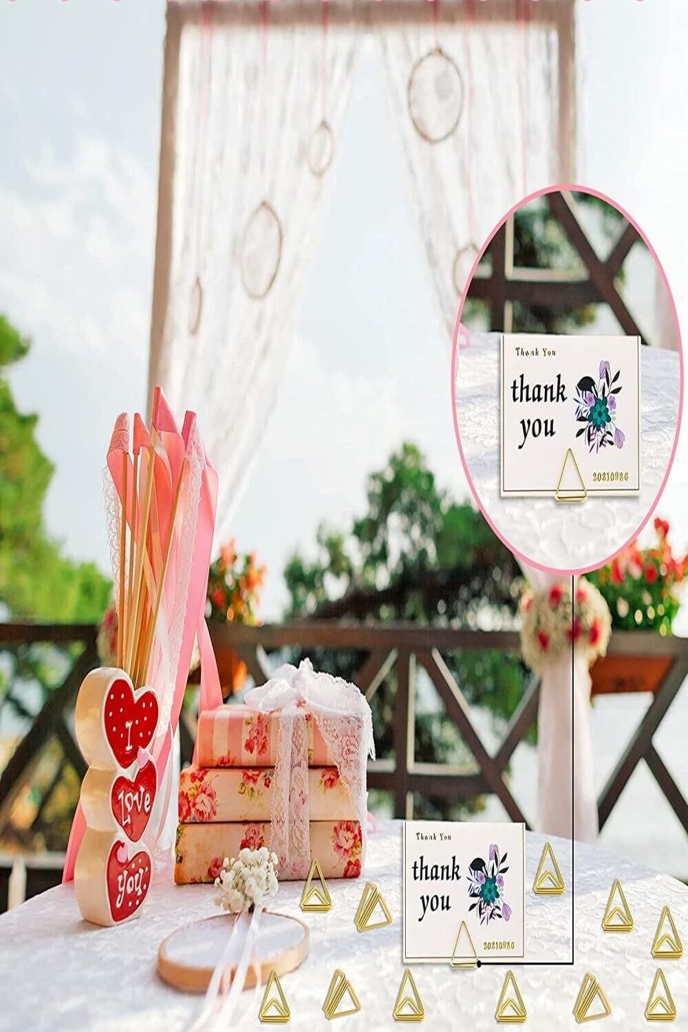 【広範な応用】このメモホルダーは、メモ、写真、名刺、カード、席札などを立てるために使用します。結婚式のテーブル番号、写真などを置くことができ、結婚式、パーティー、誕生日、レストラン、家庭装飾などに適用でき、