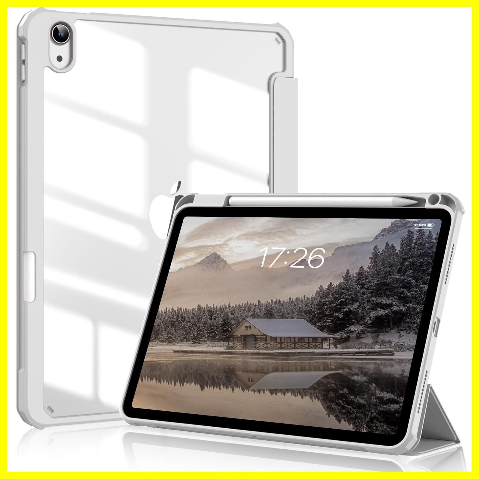 SQBEBS iPad 11世代 ケース A16 (2025) iPad 第11/10世代 10.9インチ (2022) 透明バックカバー ペンシルホルダー付き 三つ折りスタンド Touch IDとオートスリープ機能対応 軽量 薄型 傷つけ防止 PU合成レザー TPU グレー