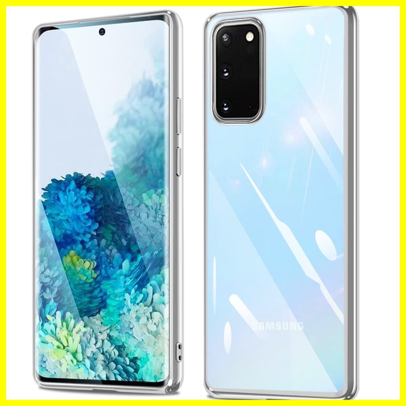 Galaxy S20 ケース クリア ギャラクシーs20 SC-51A/SCG01 カバー 透明 耐衝撃 軽量 薄型 tpu 背面クリア メッキ加工 スマホケース ソフト ストラップホール付き ワイヤレス充電対応(galaxyS20, シルバー)